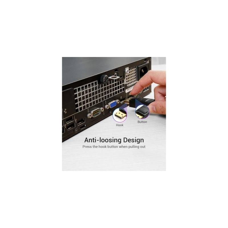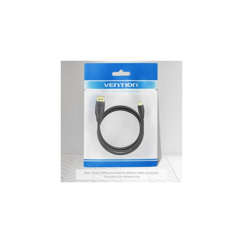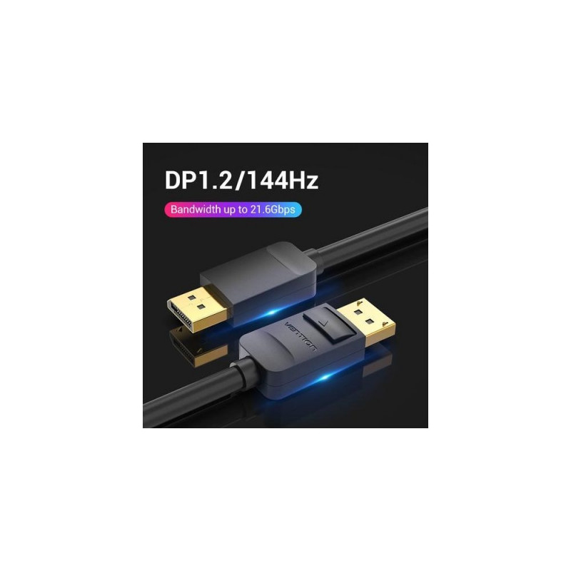 <b>- DP Cable:</b>DisplayPort to DisplayPort cable allows you to connect a DisplayPort from Laptops to a High-Res Monitor or projector with Display input<br><b>- Extension and Mirroring:</b>DisplayPort cables transmit High definition audio and video. The DisplayPort cable connects and configures your monitor for an extended desktop or mirrored displays<br><b>- 4K Resolution:</b>DisplayPort cables of 1.2 support video resolutions up to 4K and 1080P, as well as uncompressed digital 7.1, 5.1 or 2-channel perfect audio pass-through<br><b>- High Performance:</b>It is made of Alumium foil shielding and metal braid shielding to ensure interference-free signal transmission<br><b>- Card hook design:</b>The DisplayPort connector has a card hook to provide secure connection with the port. Press the button down before unplugging the connector<br><br><b>DP1.2 HD Cable</b><br><br>DP male to male connection<br><br><b>DP1.2 / 144Hz</b><br><br>Bandwidth up to 21.6Gbps<br><br><b>4K Incredible Clear Picture</b><br><br>Support 3840*2160<br><br><b>Immersive 3D Effect</b><br><br>Support general 3D format Dual video streaming output<br><br><b>Audio and Video Synchronization</b><br><br>DP Laptop to DP Monitor<br><br><b>Multi-screen Expansion</b><br><br><b>Triple Shielding</b><br><br>Picture is stable without distortion<br><br><b>Anti-loosing Design</b><br><br>Press the hook button when pulling out<br><br><b>Applicable Device</b><br><br>Support the connection between DP devicesVention DP Cable 1.5M Black. Cable length: 1.5 m, Connector 1: DisplayPort, Connector 2: DisplayPort. Cable diameter: 7 mm, Quantity per pack: 1 pc(s)