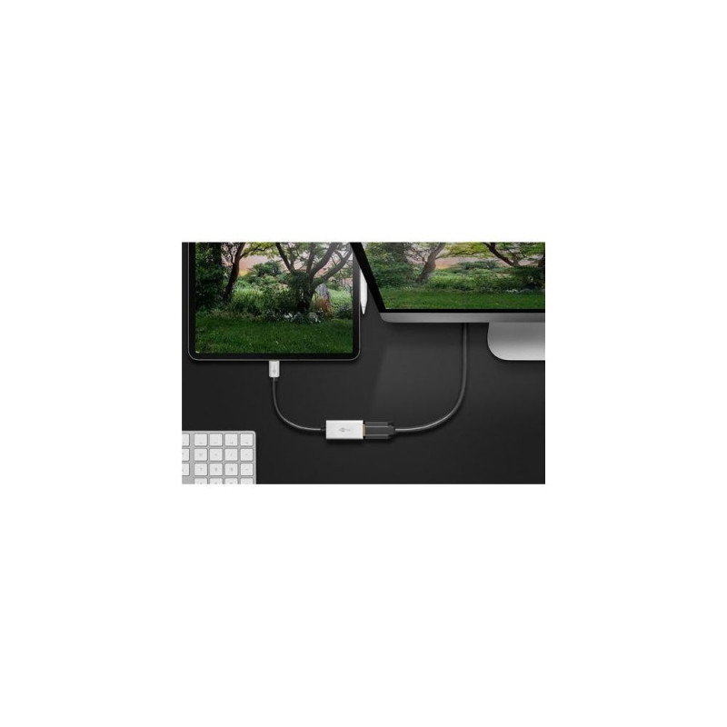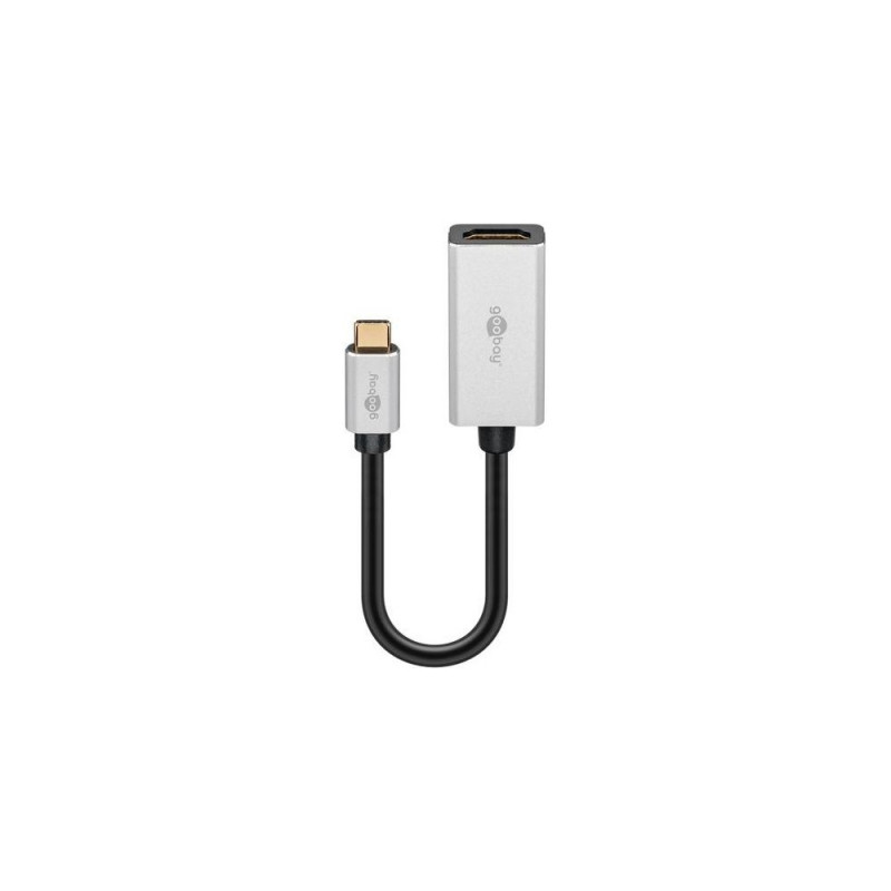 USB-C™ connector > HDMI™ port (type A)<br>The USB-C™ to HDMI™ adapter mirrors data, audio and video signals to HDMI™ devices. With the help of this adapter, you can easily synchronise USB-C™ connections such as smartphone or laptop screens with larger screens such as TVs, monitors or projectors via HDMI™.Goobay 60194. USB connector type: USB Type-C, USB connector gender: Male, USB connector form factor: Straight. Product colour: Black, Silver, Housing material: Aluminium, Polyvinyl chloride (PVC). Width: 21 mm, Depth: 45 mm, Height: 11 mm