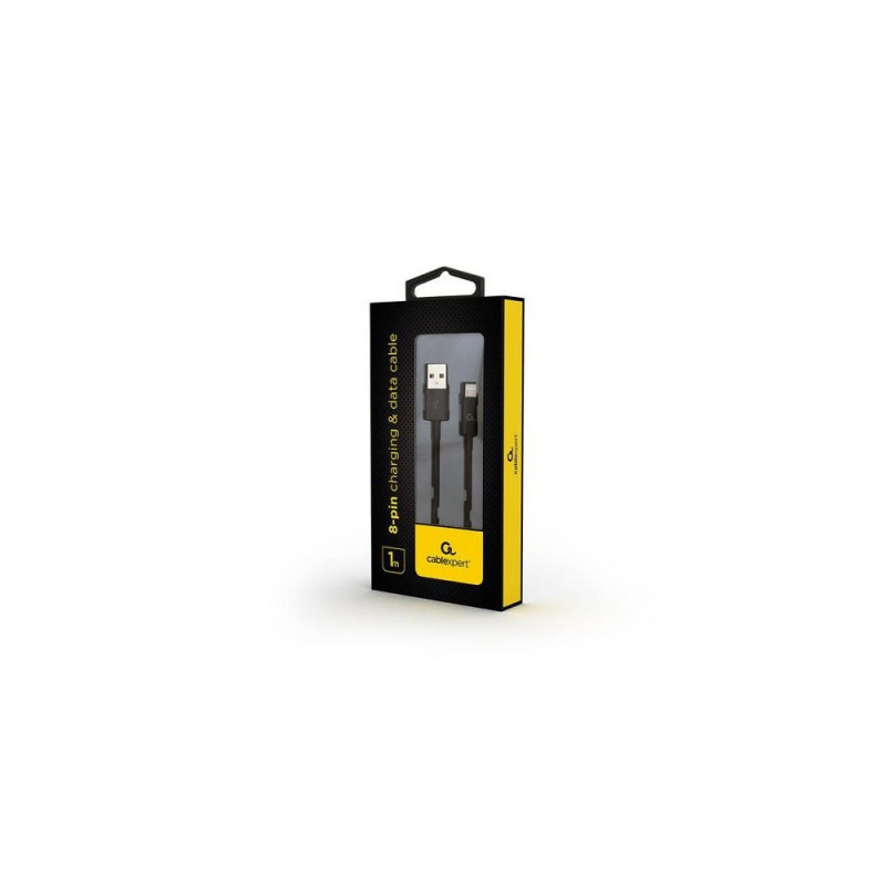 USB to 8-pin charging and data cable for e.g. Apple iPhone or iPadCablexpert CC-USB2P-AMLM-1M. Cable length: 1 m, Connector 1: Lightning, Connector 2: USB A. Quantity per pack: 1 pc(s), Package width: 80 mm, Package depth: 150 mm