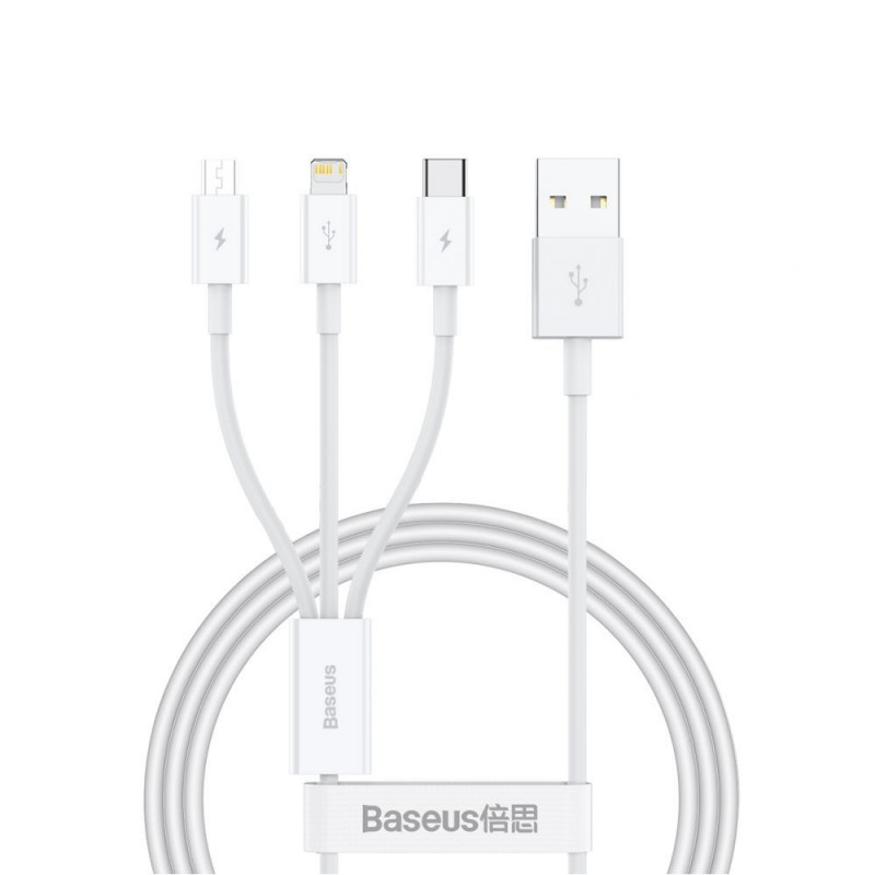 Kabelis Baseus Baseus Superior Series USB-A - USB-C / Lightning / micro USB 3.5A cable 1m - white