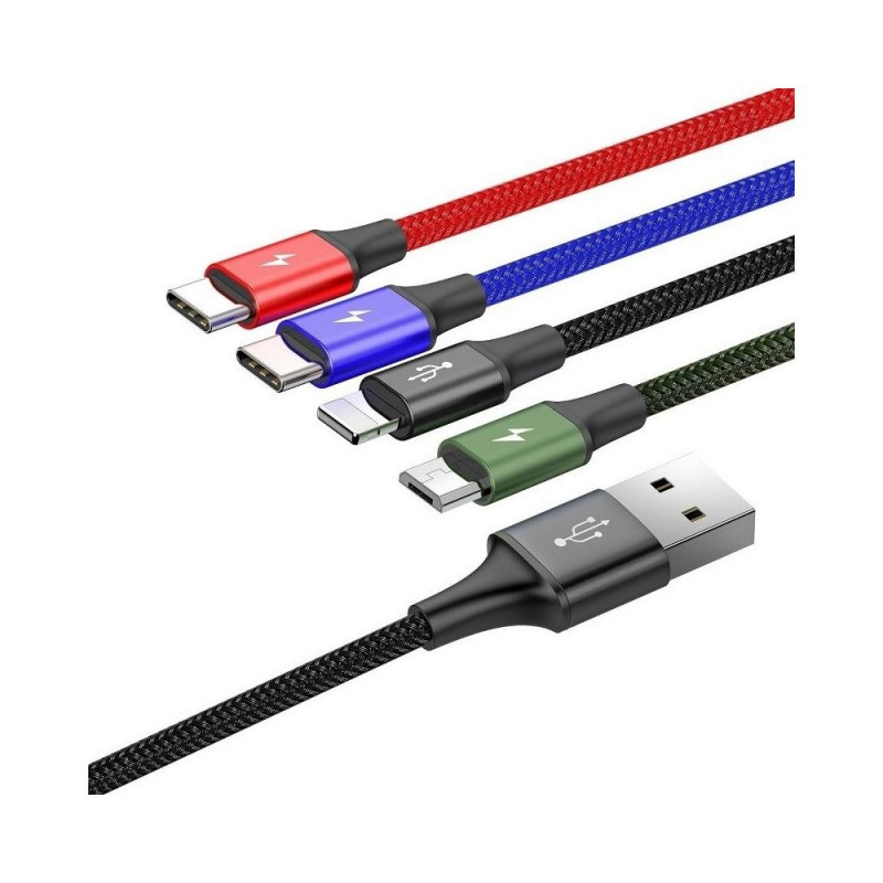 USB Cable - Baseus Fast 4in1 1.2m Black 2xusb-c / Lightning Micro 3.5a