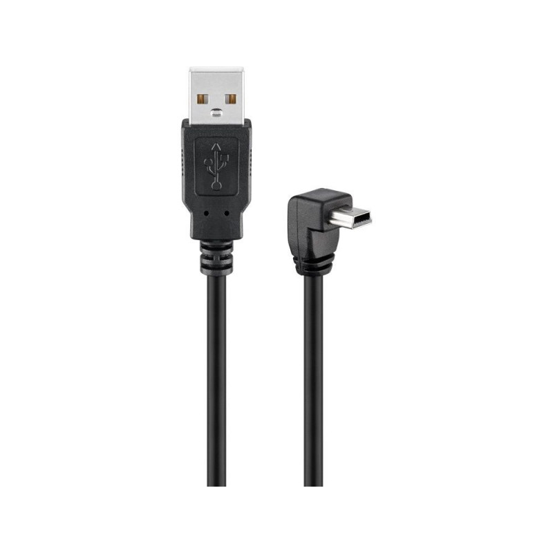 USB 2.0 kaabel A - Mini B nurgaga 1.8m, must