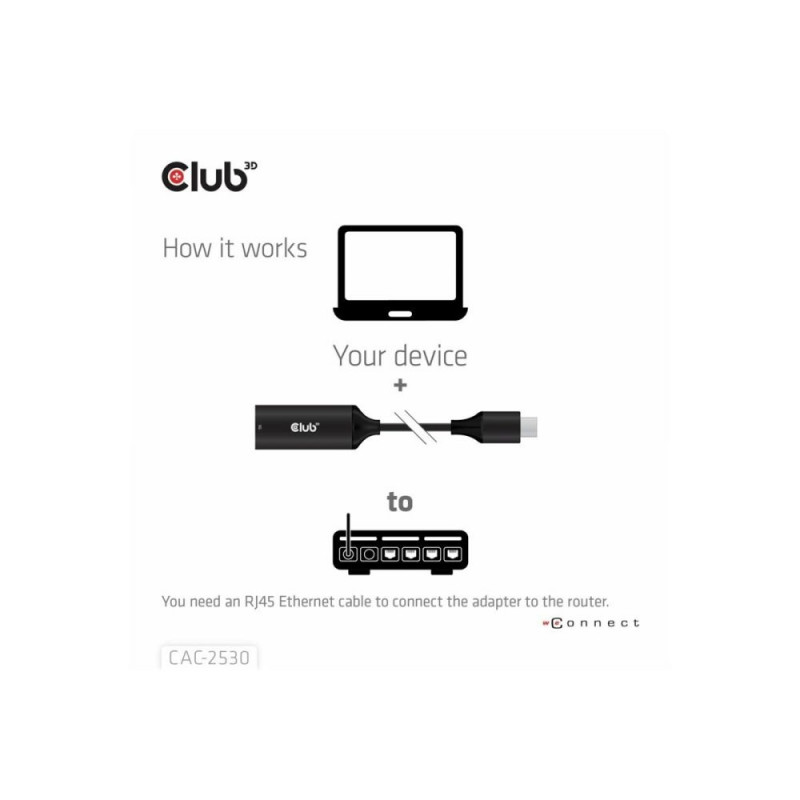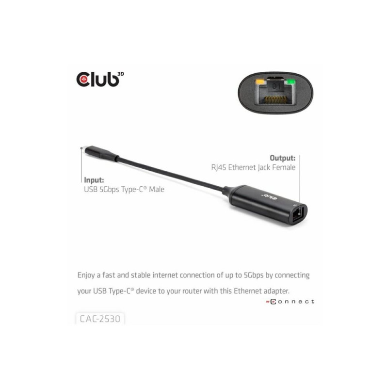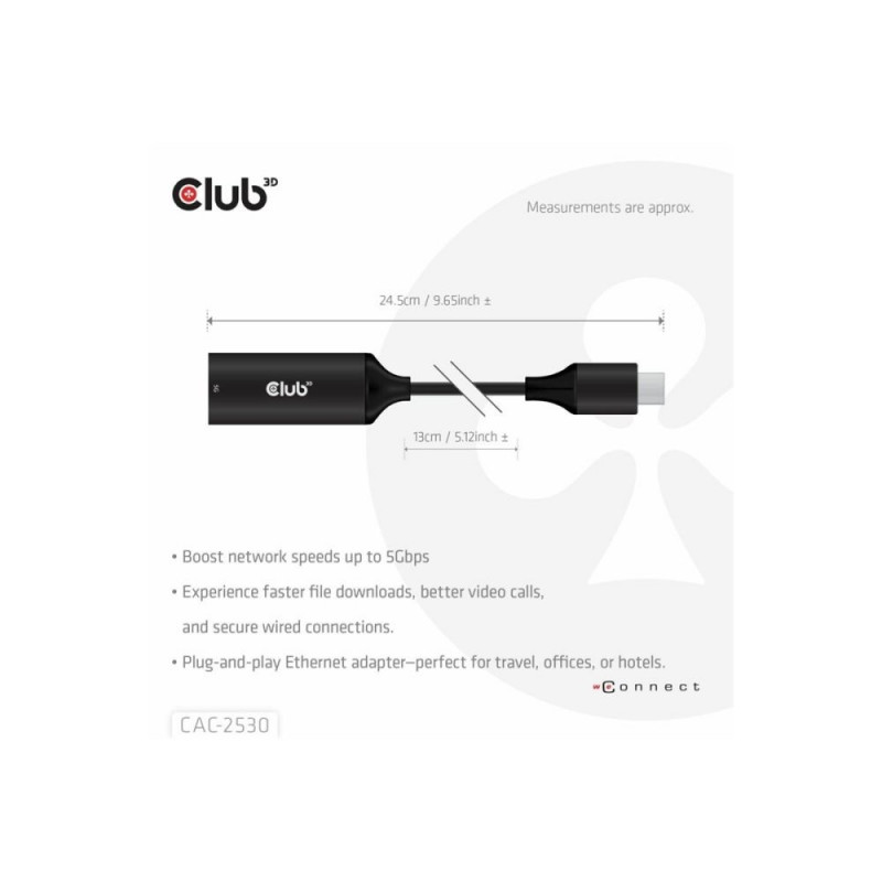 | Product Description | Club 3D - network adapter - USB-C - 100M/1G/2.5G/5 Gigabit Ethernet x 1 |