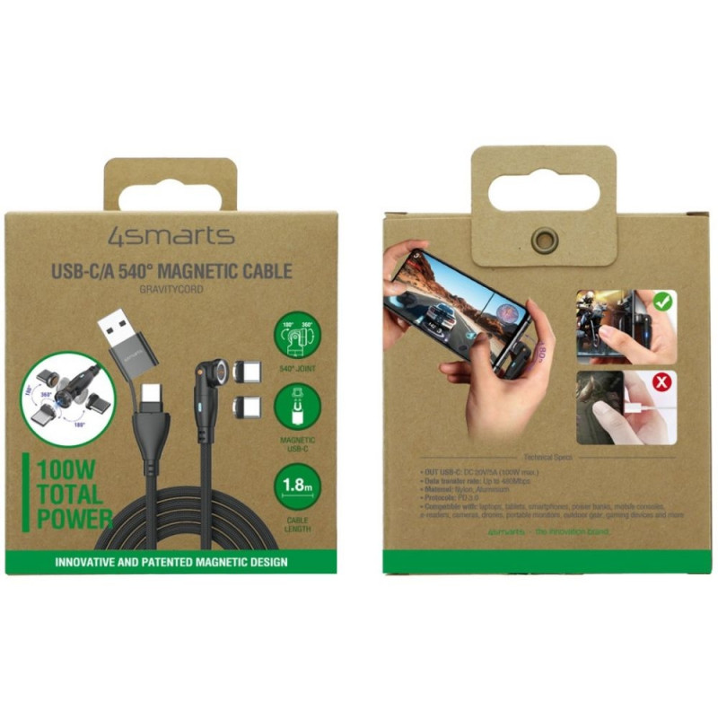 "4smarts USB-C/A 540 Magnetkabel GravityCord 100W 1.8m schwarz"