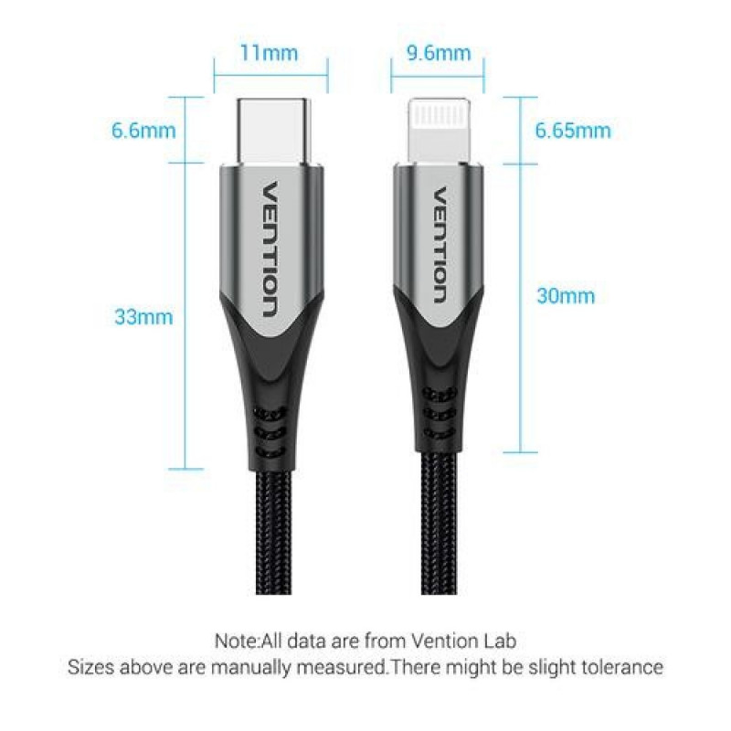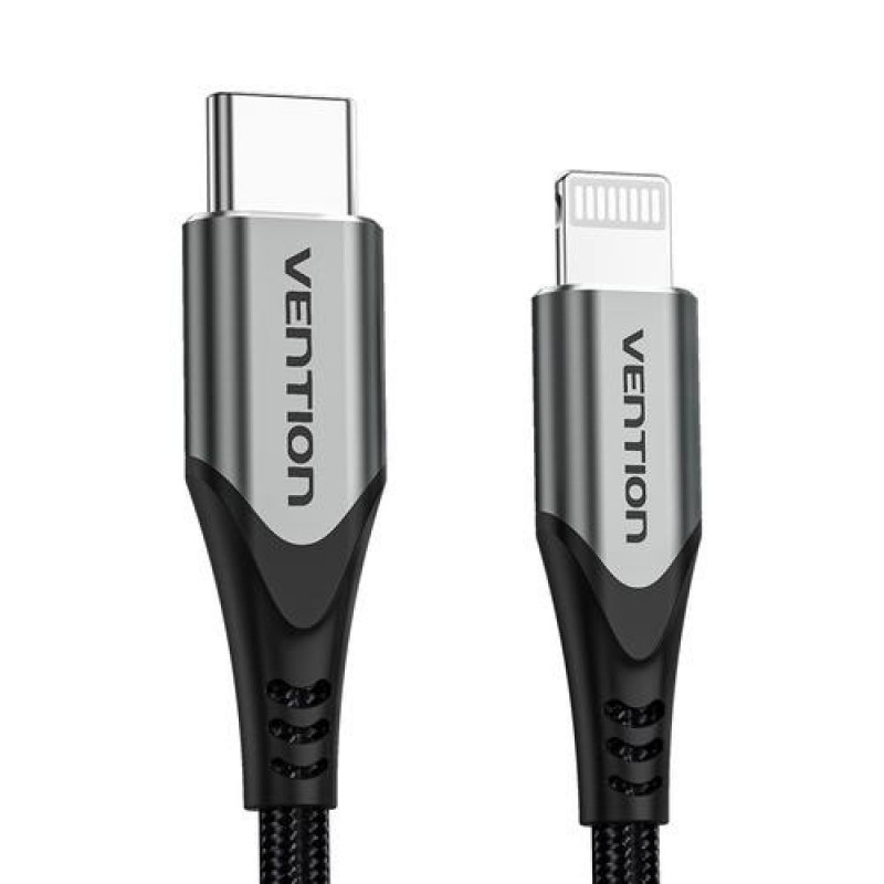 <b>- Ultra-high Durability:</b>Premium Aluminum housing makes the cable more durable, and the nylon braid is wear-resistant and resistant to stretch.<br><b>- Fast Transmission:</b> USB2.0 data transfer reaches 480Mbps, which can effectively transmit music, files, pictures and videos in a short time.<br><b>- MFi Certification:</b> MFi certification is compatible with IOS, without pop-up window and strict quality inspection, ensuring that Apple devices are charged safely at the fastest speed.<br><b>- Safe Charging:</b>Thick tinned copper wire core is used inside, multi-layer shielding protection, safe charging will not damage the phone.<br><br><br>Ultra-high Durability Premium Aluminum housing makes the cable more durable, and the nylon braid is wear-resistant and resistant to stretch<br>Fast Transmission USB2.0 data transfer reaches 480Mbps, which can effectively transmit music, files, pictures and videos in a short time<br>MFi Certification MFi certification is compatible with IOS, without pop-up window and strict quality inspection, ensuring that Apple devices are charged safely at the fastest speed<br>Safe Charging Thick tinned copper wire core is used inside, multi-layer shielding protection, safe charging will not damage the phone<br><br><br><b>VENTION High-Q USB C to Lightning cable for PD fast charging and 480Mbps data synchronization [MFi certification]</b><br><br><b>3A fast charging</b><br><br>Use USB-C PD charger to provide high-speed charging up to 3A(maximum)<br><br><b>Safe and Reliable</b><br><br>VENTION USB C to Lightning cable made from original chips provides a secure and stable voltage.<br><br><b>Data transmission</b><br><br>The data it provides can be synchronized to 480Mbps in a few seconds, and transfer music, movies, and files between iPhone and USB-C laptop.<br><br><b>Best Choice for Charging</b><br><br>Use the C to Lightning cable with your USB-C PD Charger (including 18W, 20W USB-C Power Adapter) to charge your iOS device.<br><br><b>Lightning Connector (PD Charging):</b><br>- For iPhone 12/12 Mini/12 Pro/12 Pro Max/iPhone SE/ iPhone 11/ 11 Pro/ 11 Pro Max/ XS Max/ XS/ XR/ X/ 8 Plus/ 8<br>- For iPad Pro 12.9"(2017)/ 10.5"(2017), iPad Air3, iPad Mini 5<br><b>Non-PD Charging:</b><br>- For iphone7/7Plus/6S/6/6Plus<br>- For iPad Pro 9.7"/ 9.7", iPad Air9.7", iPad mini7.9"Vention USB 2.0 C to Lightning Cable 1M Gray Aluminum Alloy Type. Product colour: Grey, Connector 1: USB C, Connector 2: Lightning. Package type: Box, Quantity per pack: 1 pc(s)