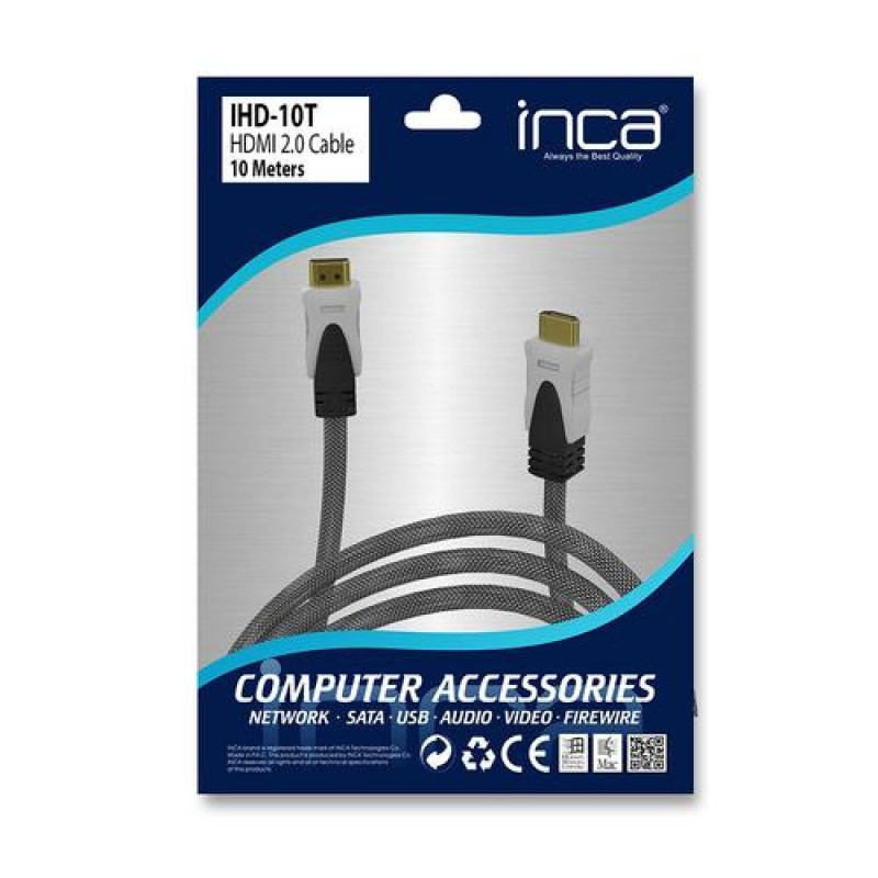 <br />Inca IHD-10T. Cable length: 10 m, Connector 1: HDMI Type A (Standard), Connector 1 gender: Male, Connector 2: HDMI Type A (Standard), Connector 2 gender: Male, HDMI version: 2.0, Product colour: Grey