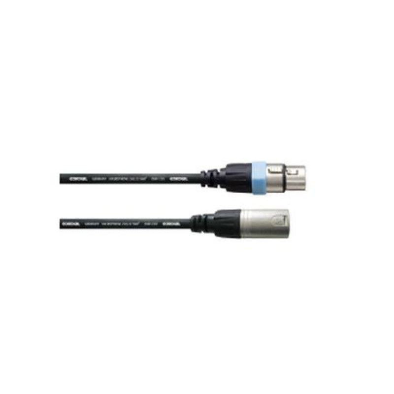 <br />Cordial INTRO CCM 20 FM. Connector 1: XLR (3-pin), Connector 1 gender: Male, Connector 2: XLR (3-pin), Connector 2 gender: Female, Cable material: Copper, Connector contacts plating: Copper, Cable length: 20 m, Product colour: Black
