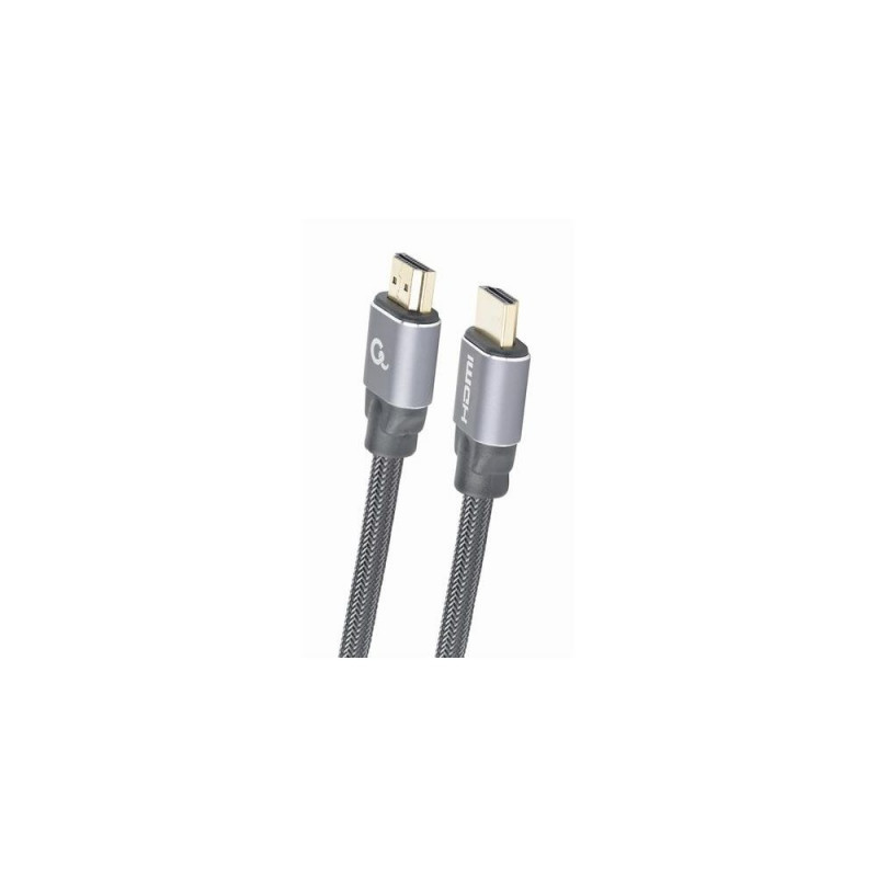 Premium High Speed HDMI cable with Ethernet<br> Supports HDMI 2.0 4K UHD resolutions at 60 Hz<br> Durable nylon braiding and premium metal connectors<br> Gold plated connectors for perfect image quality<br> Compatible with all devices that support HDMI<br>Gembird CCBP-HDMI-5M. Cable length: 5 m, Connector 1: HDMI Type A (Standard), Connector 1 gender: Male, Connector 2: HDMI Type A (Standard), Connector 2 gender: Male, Connector contacts plating: Gold, HDMI version: 2.0, Product colour: Grey