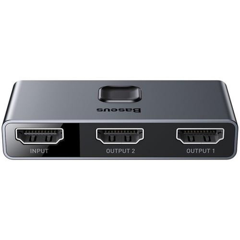 You’ll never have the annoyance of having too many HDMIs plugged in ever again!<br><br>This product allows you to have more devices plugged in and you can easily switch between displays at the press of a button<br><br>Whether it’s projecting onto two different screens or sharing one screen with two devices, this small HDMI splitter really packs quite the punchBaseus Matrix HDMI 4K HD Splitter. Type: Cable splitter, Product colour: Grey, Connector gender: Female. Connector(s): HDMI