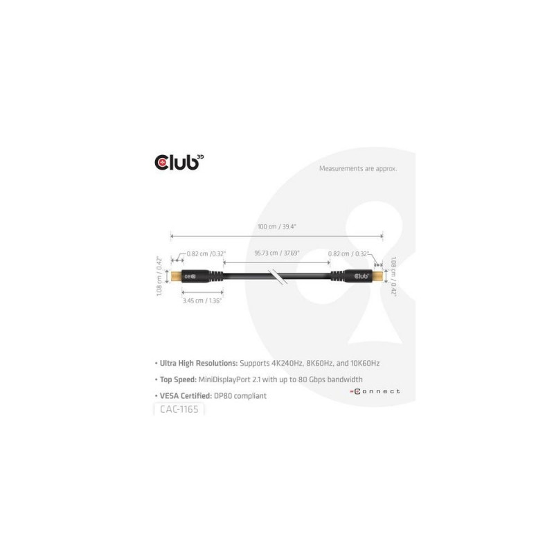 CLUB3D MiniDisplayPort™ to MiniDisplayPort Bi-Directional VESA DP80 Certified Cable M/M 1m/3.28ft