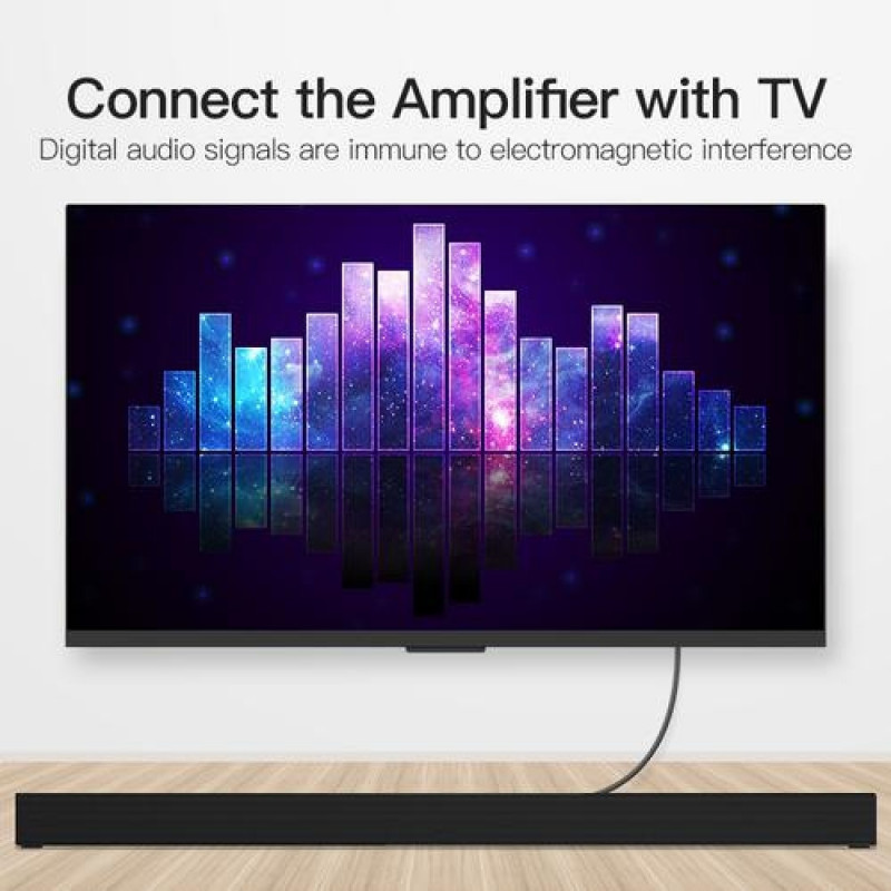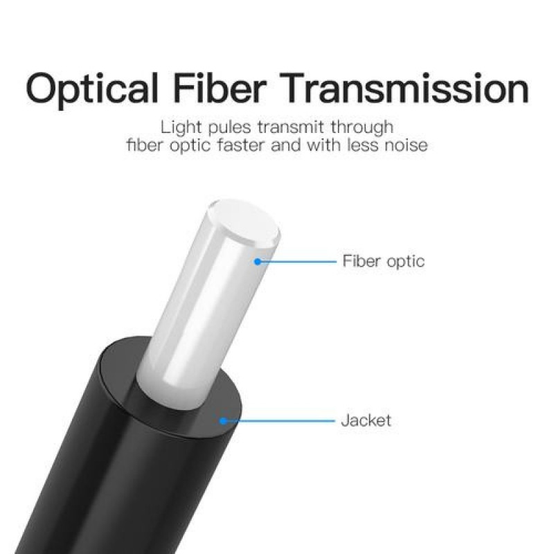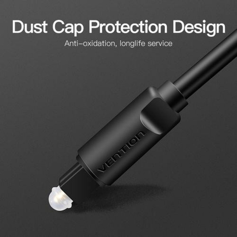 <b>- Perfect Compatibility:</b>The VENTION fiber audio cable is compatible with standard and HD devices with Toslink connectors.Fiber optic cables are ideal for the sound bar of receiver/preamp, audio processor, DAC, TV and PS4, Playstation, Xbox game system, etc.<br>- Home cinema TOSLINK fiber cable - Professional Toslink cable can be used for multi-channel surround sound, uncompressed PCM audio optical and compressed 5.1 to 1 surround sound systems, including Dolby Digital +, DTS-HD with high resolution and LPCM.<br>- The digital audio cable of the highest quality: the digital optical audio cable from VENTION has a fully flexible PVC jacket and is precisely manufactured to provide high-quality, flexible optical cables with the longest service life.<br>- Friendly design: the removable rubber head protects the plug when not plugged in.<br><b>- 24K Gold Plated Connector:</b>Corrosion-resistant gold plating keeps the connector clean and allows optimal signal transmission, clears uncompressed PCM audio and compressed 5.1 to 7.1 surround sound.Because our cables are optically they are not disturbed by RFI or EMI signals.<br><br><b>Optical cable for sound bar to TV, fibre optic cable, Sky Cinema</b><br><br>- Robust connectivity<br>- Good strength and difficult loosening and dropping<br>- Fibre optic transmission, excellent sound quality<br>- The optical signal transmission is free from electromagnetic interference and ensures clear sound quality<br>- Connect the PS4 / X-Box to the amplifier<br>- More fun when playing with big screen<br>- Connect the interface<br>- Fibre optic interfaces are often commented with SPDIF / OPTICAL / FIBER / OPT / TOSLINK<br>- Connect the speaker to the TV<br>- Show off extraordinary sound effects<br>- Connect the amplifier to the TV<br>- Digital audio signals are immune to electromagnetic interference<br><br><b>High-resolution HI-FI sound</b><br><br>Dolby AC3 and DTS surround audio<br><br>- High-resolution digital audio<br>- Digital noise reduction, improve DAC signal to noise ratio<br>- Lossless remote transmission<br>- Resists electromagnetic interference<br>- VENTION Digital Optical Audio Cable.<br>- Pure external sound quality.<br>- Glass fibre square mouth and opposite mouth.<br>- Digital noise reduction.<br>- AC3 and DTS surround audio.<br>- Optical transmission over long distances at high speed.Vention Optical Fiber Audio Cable 2M Black. Connector 1: TOSLINK, Connector 1 gender: Male, Connector 2: TOSLINK, Connector 2 gender: Male, Cable material: Fiber optic, Cable length: 2 m, Product colour: Black
