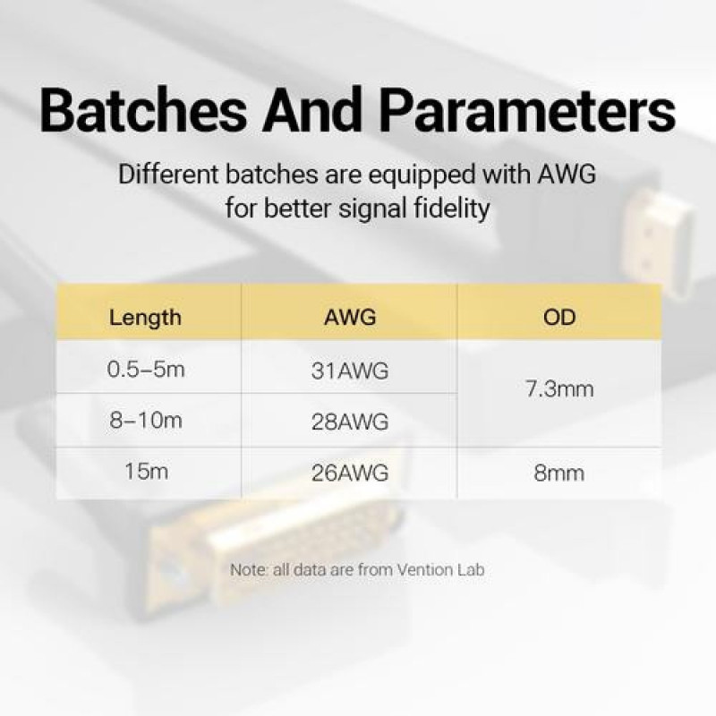 <b>- Bi-directional Transfers:</b>HDMI to DVI cable It is possible to connect source devices with HDMI port to output devices with DVI port. Or connect DVI-enabled devices to HDMI-enabled devices, one line is multi-purpose.<br><b>- 4K resolution:</b>HDMI to DVI-D supports 1080p @ 60Hz; compatible with all HDTV formats, supporting resolution at 800x600, 1024x768, 1280x1024, 1600x1200, 1920x1200, and 1080P.<br><b>- Double Shielding:</b>Aluminum Foil and braid shielding minimize crosstalk, suppress noise, ensure a stable signal transmission between devices and protect against electromagnetic interference (EMI) and radio frequency interference (RFI).<br><b>- Excellent Construction:</b>24K Gold-plated full metal connectors and oxygen free copper lines and molded strain relief for durability, withstand multi times of plug and unplug; finger-tightened screws for a secure DVI connection.<br><b>- Universal Compatibility:</b>Compatible with all HDMI or DVI-D 24+1 equipped devices, also compatible with DVI-I 24+5 equipped devices, such as PC PS4 Raspberry Pi, TV Roku Xbox Laptop Macbook DVD Blu-Ray Monitor Display.<br><br><b>VENTION Bi-directional HDMI to DVI Male to Male cable</b><br><br>VENTION cable delivers a superior signal thanks to its durable PVC outer layer, shielding, and corrosion-resistant gold-plated connectors (HDMI A Male to DVI 24+1 Male).<br><br>Enjoy clean and clear transmission,enjoy in your life.<br><br><b>Support two way conversion</b><br>HDMl to DVl, DVI to HDMl, Mutual Conversion, Multipurpose All In One LineVention HDMI to DVI Cable 3M Black. Cable length: 3 m, Connector 1: HDMI Type A (Standard), Connector 2: DVI-D. Cable diameter: 7.3 mm. Quantity per pack: 1 pc(s), Package type: Polybag