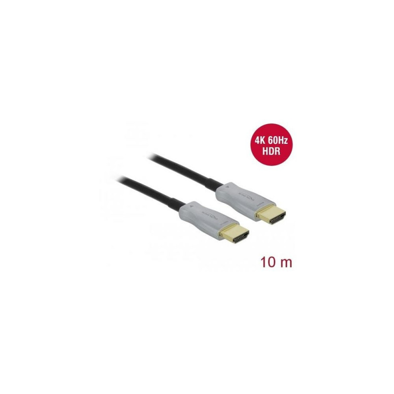 This cable by Delock is used to connect devices with a HDMI interface, such as monitors or TVs, to a PC or a laptop. This active optical cable is particularly thin and can transmit signals without loss over longer distances.DeLOCK Active Optical Cable HDMI 4K 60 Hz 10 m. Cable length: 10 m, Connector 1: HDMI Type A (Standard), Connector 1 gender: Male, Connector 2: HDMI Type A (Standard), Connector 2 gender: Male, Connector contacts plating: Gold, Data transfer rate: 18 Gbit/s, Product colour: Black