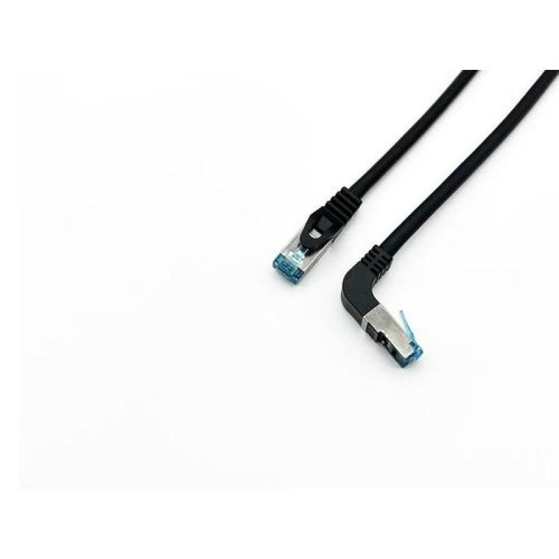 The Cat.6A S/FTP Patch Cable with an Angled to Straight plug is a high-performance Ethernet cable designed for various networking applications. Its unique feature is the angled connector on one end and a straight plug on the other. This design reduces cable strain and allows for efficient cable routing in tight spaces.<br><br>The cable is constructed with S/FTP (Shielded Foiled Twisted Pair) technology, providing excellent protection against electromagnetic interference (EMI) and ensuring optimal signal quality. It's compatible with Cat.6A standards, capable of supporting high-speed data transmission up to 10 Gbps.<br><br>The angled connector allows for easy and secure connections, even in areas with limited space. It's suitable for use in professional networking environments, data centers, offices, and home setups where reliable and high-speed connections are essential.Equip Cat.6A S/FTP Patch Cable, Angled to Straight plug, 5.0m, Black. Cable length: 5 m, Cable standard: Cat6a, Cable shielding: S/FTP (S-STP), Connector 1: RJ-45, Connector 2: RJ-45, Data transfer rate: 10000 Mbit/s, Product colour: Black