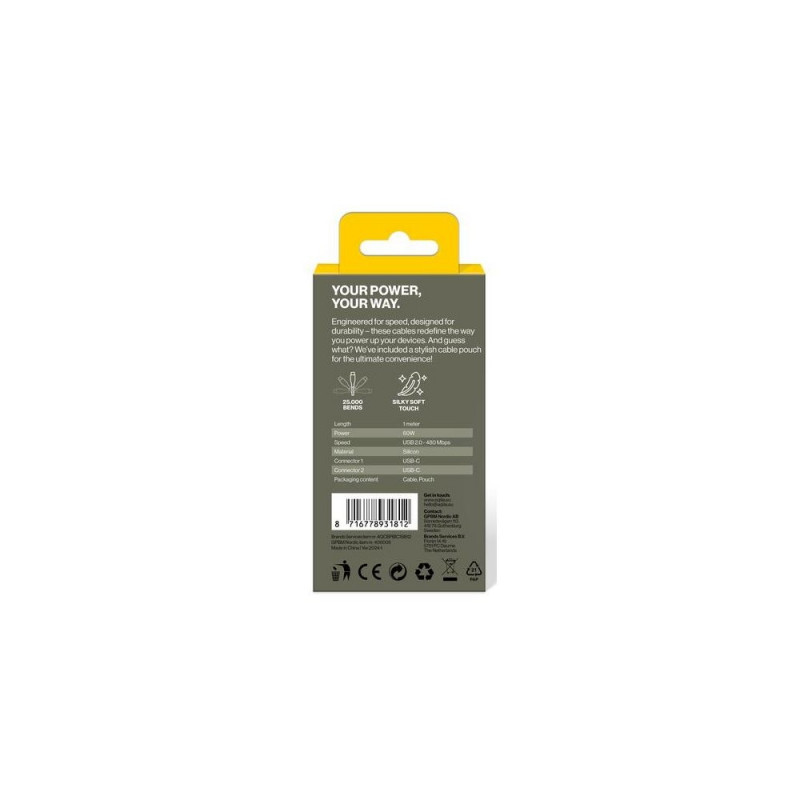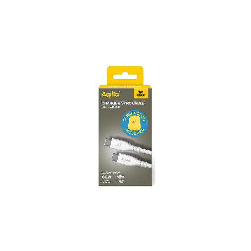 Aqiila Silicon USB-C/USB-C 2.0 60W 1mThis cable is a 1-meter USB-C to C cable that delivers 60W of power and fast data transfer speeds of up to 480 Mbps. It’s a high-quality silicone cable tested to withstand over 25,000 bends. The cable comes with a flexible cable pouch for easy storage. 100% paper packaging.Specifications:- Length: 1 meter- Power: 60W- Speed: USB 2.0 - 480 Mbps- Material: Silicone- Connector 1: USB-C- Connector 2: USB-C- Packaging contents: Cable, pouchAqiila Silicon USB-C/USB-C 2.0 60W 1m Charging cable. Cable length: 1 m. Connector 1: USB C, Connector 2: USB C, USB version: USB 2.0, Maximum data transfer rate: 0.48 Gbit/s, Product colour: White