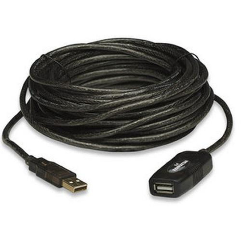 Easily overcome distance limitations to connect USB devices._x000D_<br>Use the Manhattan Hi-Speed USB Active Extension Cable to connect a computer USB port to a USB device almost anywhere in the room. Up to three daisy-chainable cable extensions provides a convenient, 30 m (99 ft.) connection. Manhattan Hi-Speed USB Active Extension Cable with built-in repeater is fully compliant with USB 1.1 and Hi-Speed USB specifications to help devices operate at maximum performance levels. Plug- and-play capability, Windows/Mac versatility and no external power or driver requirements help provide greater flexibility in computer and peripheral placement and office layout.Manhattan USB-A to USB-A Extension Cable, 10m, Male to Female, Active, 480 Mbps (USB 2.0), Daisy-Chainable, Built In Repeater, Hi-Speed USB, Black, Three Year Warranty, Equivalent to USB2AAEXT10M.. Cable length: 10 m. Connector 1: USB A, Connector 2: USB A, USB version: USB 2.0, Connector gender: Male/Female, Maximum data transfer rate: 0.48 Gbit/s, Product colour: Black