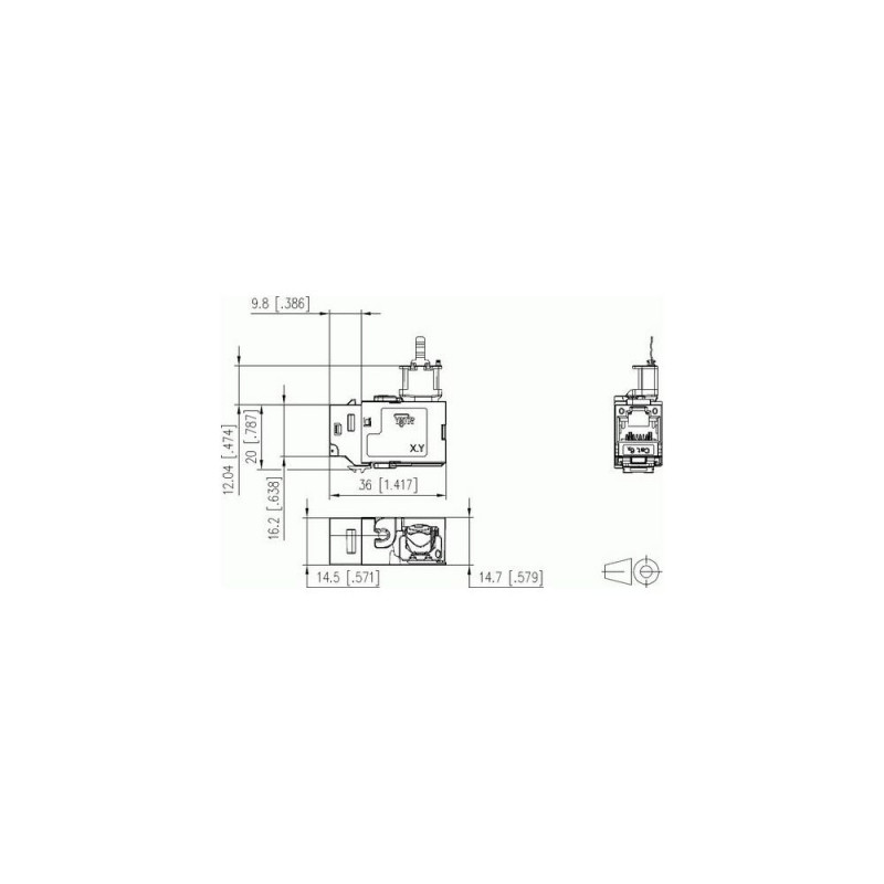 - modular Cat.6A termination unit RJ45<br>- mounting version: Keystone, 90° cable feed<br>- solid, one-piece and reusable module housing refined with zinc die-casting<br>- mounting without special tools; strain relief directly snapped on to stuffer cap<br>- easy to install connection of data lines AWG 26/1 to 22/1 (solid wire) and AWG 26/7 to 22/7 (stranded wire) to insulation displacement connectors (IDC)<br>- intelligent cable management in stuffer cap - also suitable for heavily twisted cables<br>- conductor assignment to T568A and T568B is directly printed on the stuffer cap<br>- certified to GHMT Cat.6A re-embedded PVP<br>- component testing for Cat.6A to ISO/IEC 11801 Ed.2.2:2011-06, DIN EN 50173-1:2011-09, TIA/EIA-568-C.2 (2009-08) and IEC 60603-7-51 Ed.1 (12/2008), certified to GHMT<br>- compliance with class EA up to 500 MHz to ISO/IEC 11801 Ed.2.2:2011-06, DIN EN 50173-1:2011-09<br>- tested: component up to 600 MHz, link up to 800 MHz<br>- suitable for 10 GBit Ethernet (IEEE 802.3an), Remote Powering (PoE, PoE plus and UPoE) and HDBaseTMETZ CONNECT 130B23-E. Product colour: Silver, Cable standard: Cat6/6e/6a. Compliance certificates: RoHS. Width: 14.7 mm, Depth: 36 mm, Height: 32 mm. Quantity per pack: 10 pc(s), Package length: 5.8 cm, Package width: 247 mm