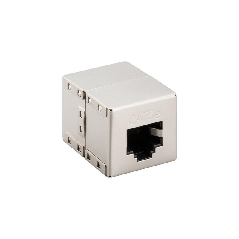 2x RJ45 female (8P8C)<br>Our network accessories transmit signals in top quality and speed. High-quality materials, robust housings and precisely fitting contacts distinguish our portfolio of jack sockets, plugs and couplings. Goobay always provides the perfect products for your network needs - whether you aim to set up a home or company network. Simply. All. You need!Goobay RJ45 Modular Coupler, CAT 5e. Construction type: Flat, Product colour: Silver, Connector 1: RJ45