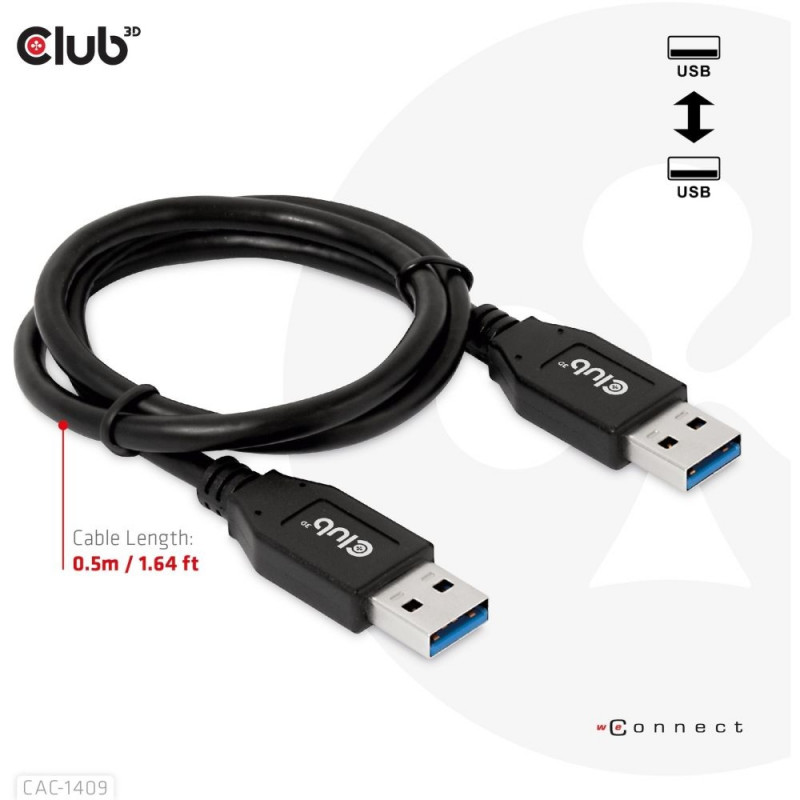 **Club3D USB Type-A Gen2 kaabel, 0.5m, 10 Gbps, must (EAN: 8719214472863)**