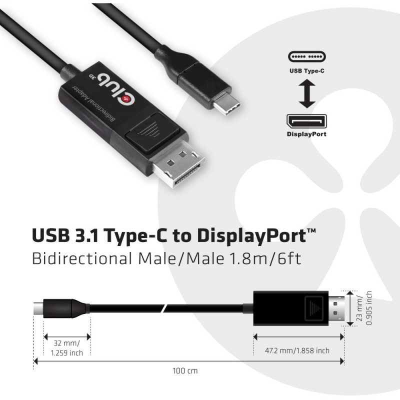 "Club3D Kabel USB 3.1 Typ C > DP 1.4 8K60Hz UHD 1.8m St/St"