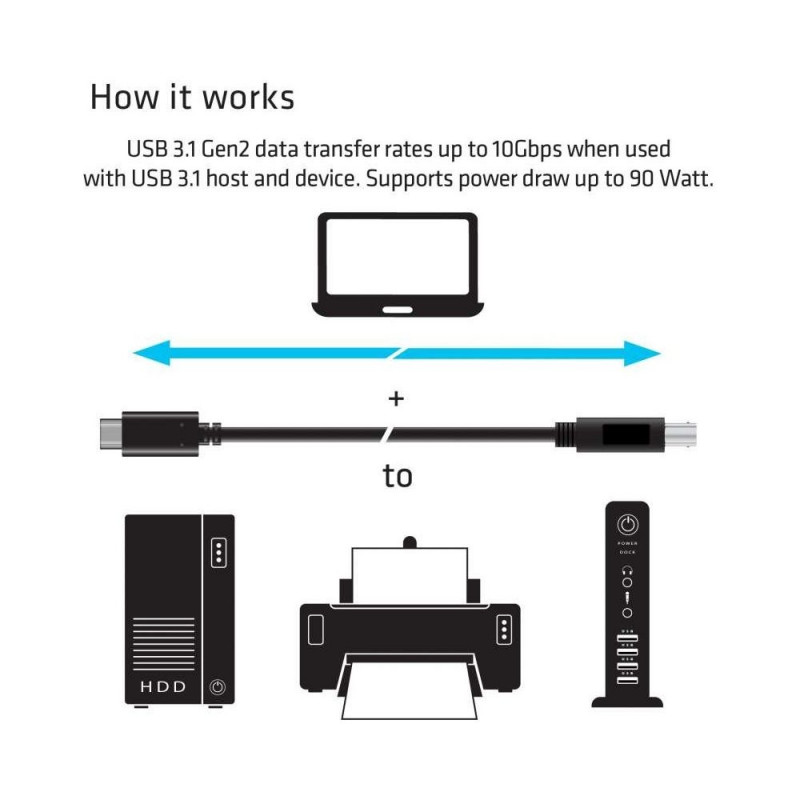 Club3D USB 3.1 Tüüp C – USB Tüüp B kaabel toetab kuni 5 Gbps andmeedastuskiirust, mis on oluliselt kiirem kui vanemad USB standardid. See võimaldab kiiret dokumentide, piltide, videote ja muude andmete ülekandmist. Kaabel sobib suurepäraselt nii kodu- kui ka ärikasutajale, kes hindab töökindlust ja kiirust.