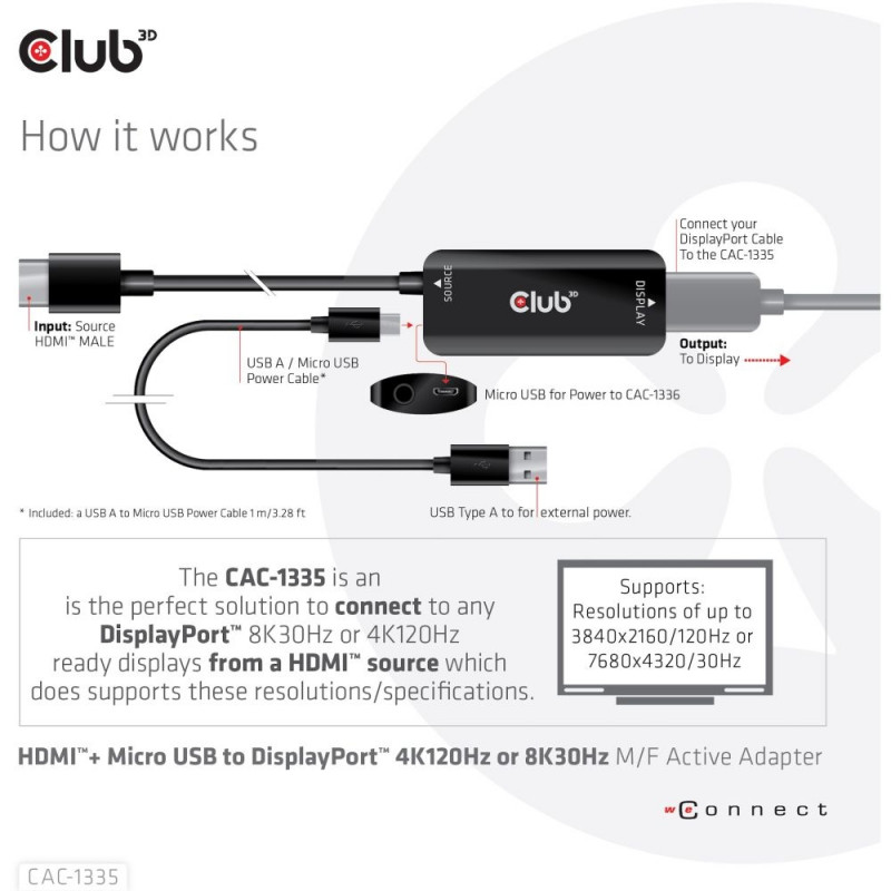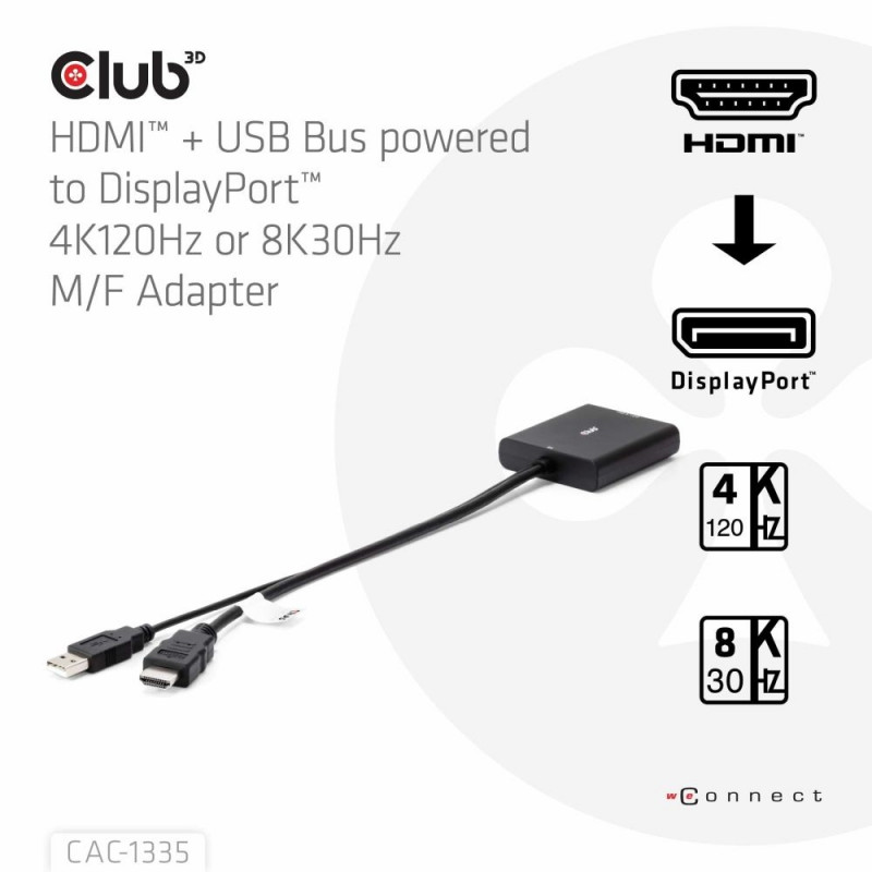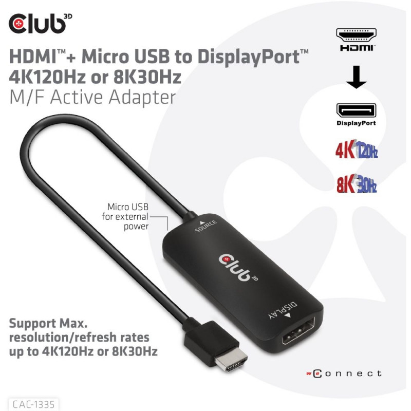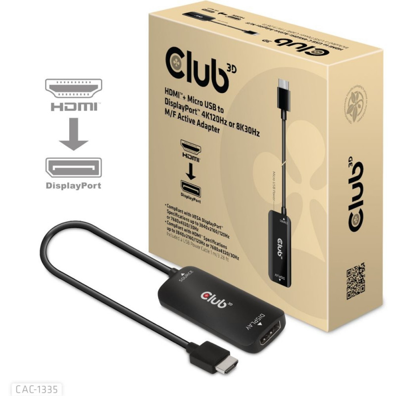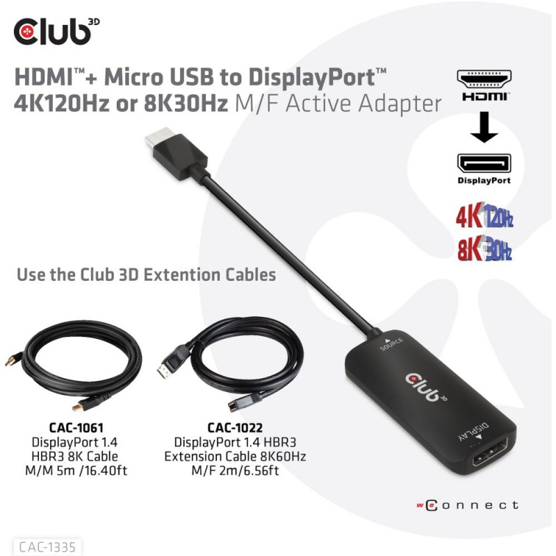 "Club3D Adapter HDMI + MicroUSB > DP 4K120Hz aktiv St/Bu"
