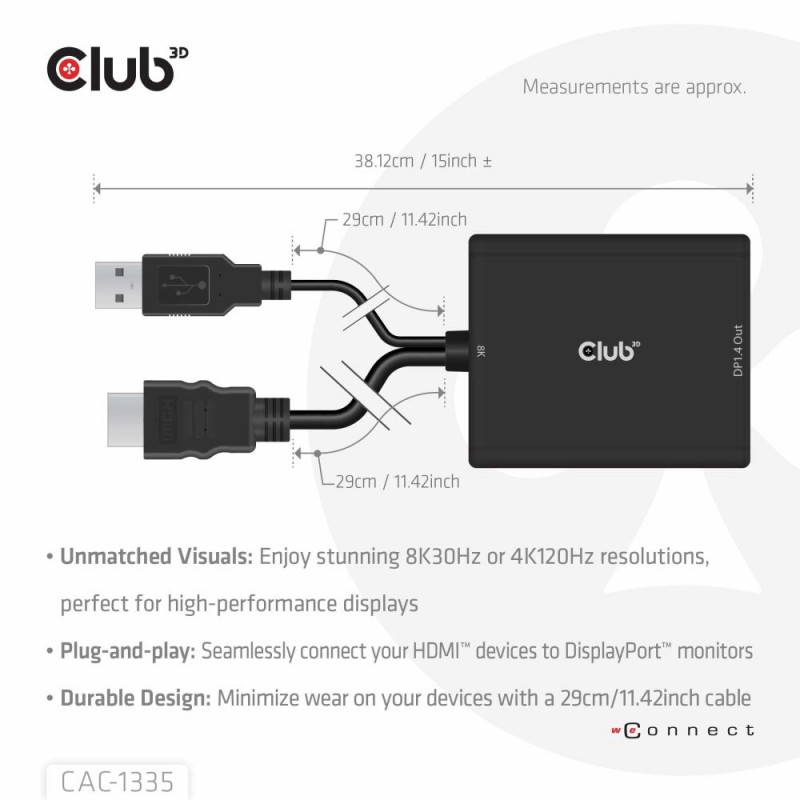 Club3D HDMI + MicroUSB > DP 4K120Hz aktiivne adapter (tootekood: CAC-1336, EAN: 8719214472498) on tipptasemel lahendus, mis võimaldab sul ühendada HDMI-väljundiga seadmeid DisplayPort-sisendiga monitoride või ekraanidega, toetades kuni 4K eraldusvõimet 120 Hz värskendussagedusega. See adapter on ideaalne nii professionaalidele, mänguritele kui ka kodukasutajatele, kes soovivad nautida kristallselget pilti ja sujuvat liikumist kaasaegsetel ekraanidel.