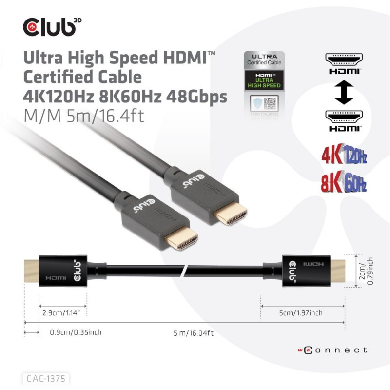 "Club3D HDMI-Kabel A -> A 2.1 Ultra High Speed 10K HDR 5m retail"