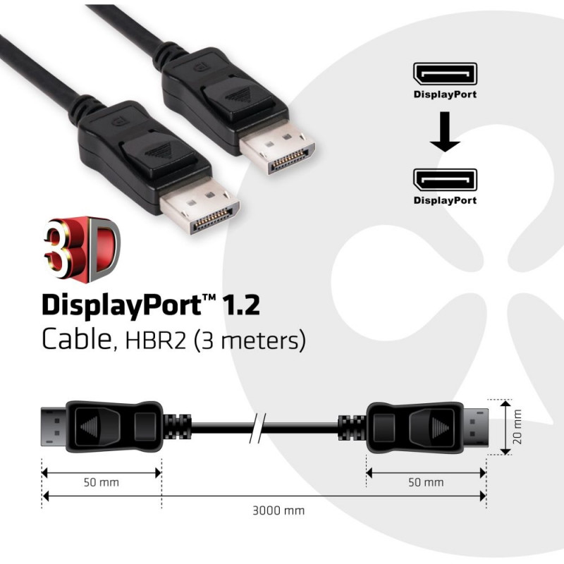 "Club3D DisplayPort-Kabel 1.2 HBR2 21.6Gb/s 3m 4K60Hz St/St retail"