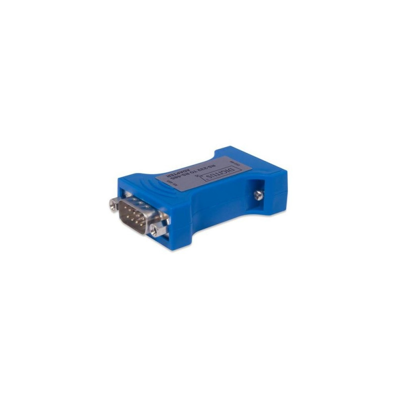 Convert RS-S232 signals into RS-485.<br><br>- Transfer speeds of 300 bps to 115,200 bps<br>- Achieves ranges of 1200 m (RS-485), 5 m (RS-232)<br>- Complies with the EIA and TIA standards<br><br>The converter enables communication between computers and serial devices that support the serial interface RS-485. The adapter converts RS-232 signals over to the RS-485 standard and enables the route extension of 5 m (RS-232 side) up to 1,200 m (RS-485 side). The converter requires no external power supply. By the use of a patented RS-232 chipset the initialization of the RS-232 interface is not required. The integrated transceiver enables the delay-free use and the automatic detection of data transfer direction of the I/O ports. The detection does not require handshaking signals (RTS, DTR) and ensures the full compatibility for RS-232 Half-Duplex mode applications without changing software. Thus, no modifications need to be performed to software and hardware before using the adapter. The converter supports a serial transfer rate from 300 to 115200 bps. The range of applications extends from industrial systems over card reader systems, access systems, digital payment systems (tolls, buses, car parks) to engineering applications.Digitus RS-232 to RS-485 Adapter. Connector 1: RS232, Connector 2: RS485. Product colour: Blue