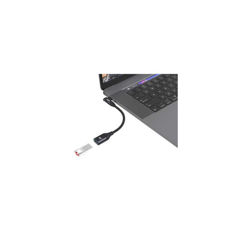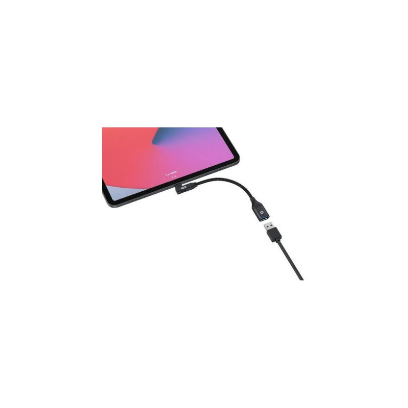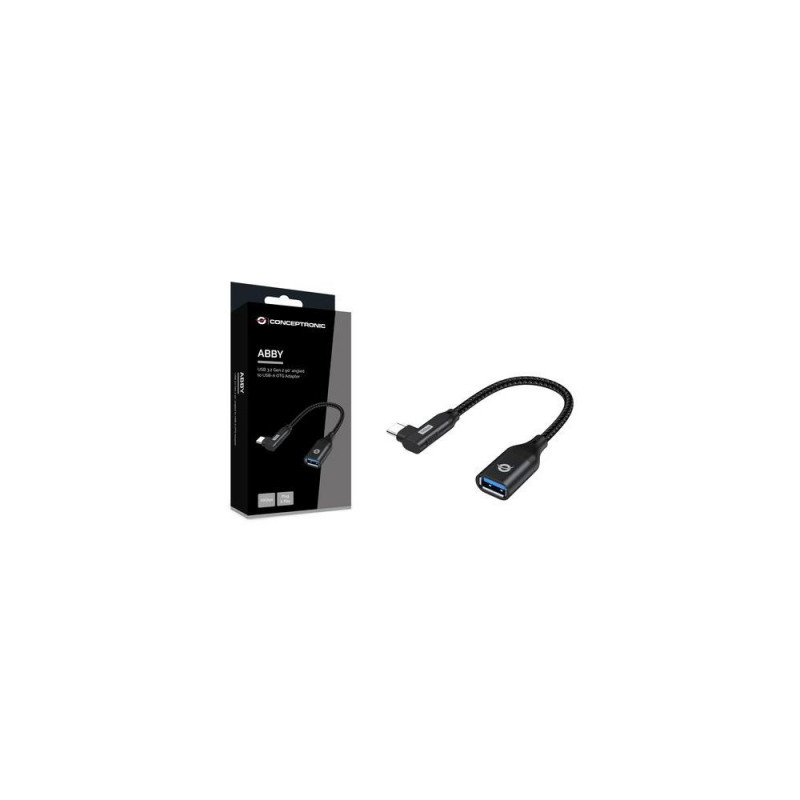 This USB-C OTG Adapter provides convenient data syncing and charging to any USB-C device such as a smartphone, portable gaming console, MacBook, Chromebook Pixel or any similar late-model laptop with USB-C ports. The adapter also provides a means of connecting devices such as external hard drives, USB flash drive or a mouse and keyboard using your existing cable, removing the need to purchase new equipment. Moreover, the adapter supports up to 3.0 Amps of power output for charging USB-C devices. A great economical choice to enhance daily life.Conceptronic ABBY19B USB 3.2 Gen 2 90° angled to USB-A OTG Adapter. Connector 1: USB-C, Connector 2: USB-A. Product colour: Black