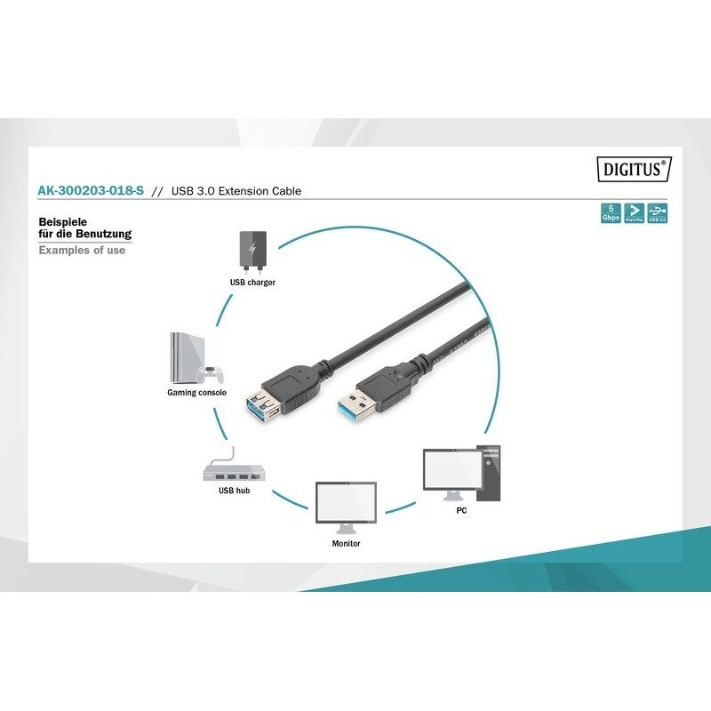 USB 3.0 extension cable, A/M - A/F 1,8m