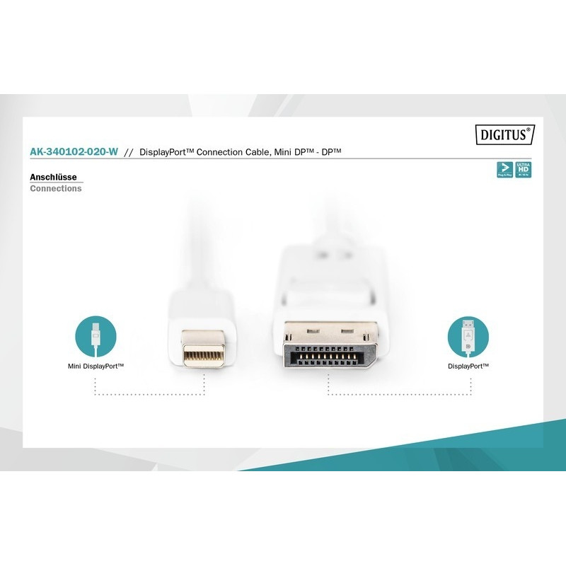 DisplayPort kaabel 1.1a mini DP-DP M/M 2.0m, valge