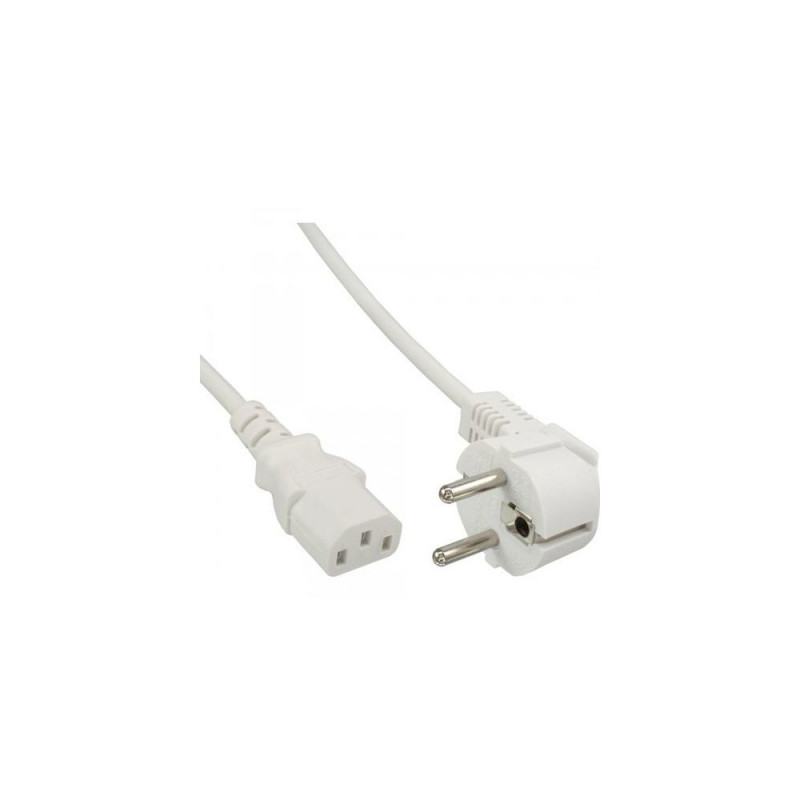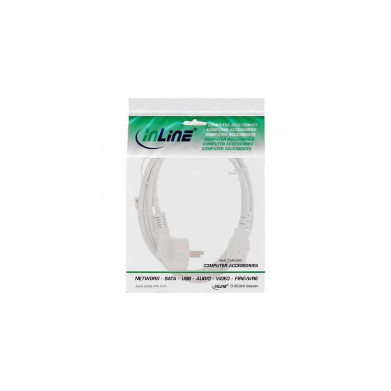 Mains cable for connecting electrical appliances with a cold appliance connection.InLine power cable, CEE 7/7 angled / 3pin IEC C13 male, white, 1.8m. Cable length: 1.8 m, Connector 1: CEE7/7, Connector 2: IEC C13