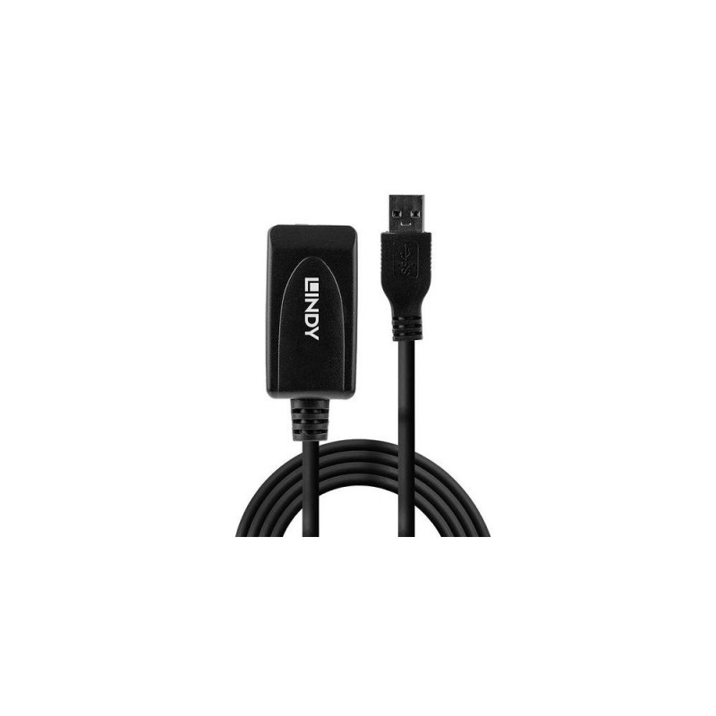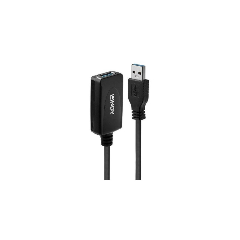 The Lindy USB 3.0 Active Extension Cable uses built-in active electronics to extend the cable length of a USB 3.0 device by an additional 5m whilst continuing to support data transfer rates of up to 5Gbps.<br><br>With its USB A male and USB A female connector it allows Type A devices such as storage devices, webcams and other Type A devices to be connected at longer distances to PCs, laptops and tablets, while also ensuring flexible positioning. Up to 2 extension cables can be chained together.<br><br>The Lindy USB 3.0 Active Extension Cable is compatible with all USB Type A equipped computers.<br><br>It is certified by Google to provide a long distance active connection between the ASUS Chromebox and USB camera in a Google Hangouts Meet hardware installation, perfect for use in boardrooms and other video conferencing scenarios.Information about USB 3.0, 3.1 and 3.2<br><br>USB 3.0, USB 3.1 and USB 3.2 PCs, cables and devices are all compatible with each other, when using either a USB Type A or USB Type C host interface.USB 3.0, USB 3.1 Gen 1 and USB 3.2 Gen 1 all support data transfer rates up to 5 Gbps. USB 3.1 Gen 2 and USB 3.2 Gen 2 both support data transfer rates up to 10 Gbps.Lindy 5m USB 3.0 Active Extension. Cable length: 5 m. Connector 1: USB A, Connector 2: USB A, USB version: USB 3.2 Gen 1 (3.1 Gen 1), Maximum data transfer rate: 5 Gbit/s, Connector contacts plating: Gold, Product colour: Black