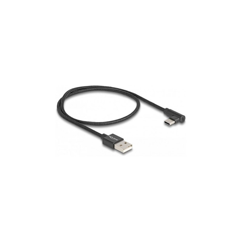 DeLOCK USB 2.0 kaabel, Type-A pistik kuni USB Type-C pistik, nurga all, 0,5 m, must. Kaabli pikkus: 0,5 m. Ühendus 1: USB A, Ühendus 2: USB C, USB-versioon: USB 2.0, Maksimaalne andmeedastuskiirus: 0,48 Gbit/s, Toote värv: must.