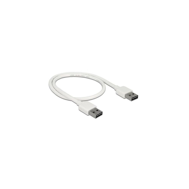 This cable by Delock with EASY-USB male can be plugged into the USB-A female port in both directions. Thus the male port can be used both-sided and make the plug in easily.DeLOCK 85192. Cable length: 0.5 m. Connector 1: USB A, Connector 2: USB A, USB version: USB 2.0, Connector gender: Male/Male, Maximum data transfer rate: 0.48 Gbit/s, Connector contacts plating: Gold, Product colour: White