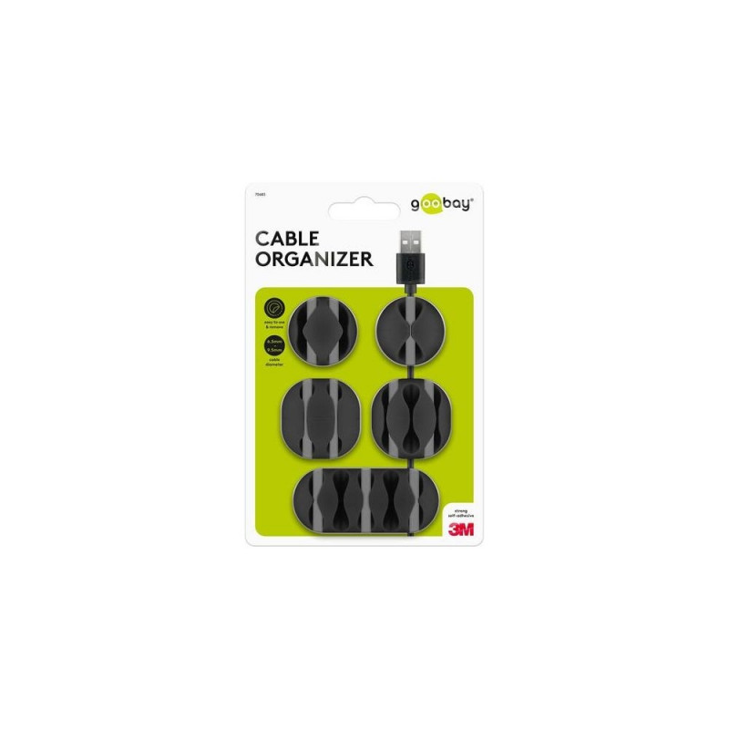 5-piece set for organising and attaching cables, removableGoobay 70683. Type: Cable clip, Purpose: Desk/Wall, Product colour: Black. Package type: Blister. Quantity per pack: 5 pc(s)