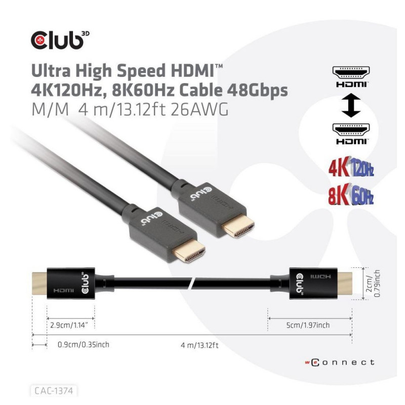CABLE HDMI TO HDMI 4M/M/M CAC-1374 CLUB3D