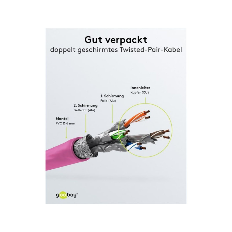 Goobay CAT 6 Patch-kaabel S/FTP (PiMF), magenta 50 m