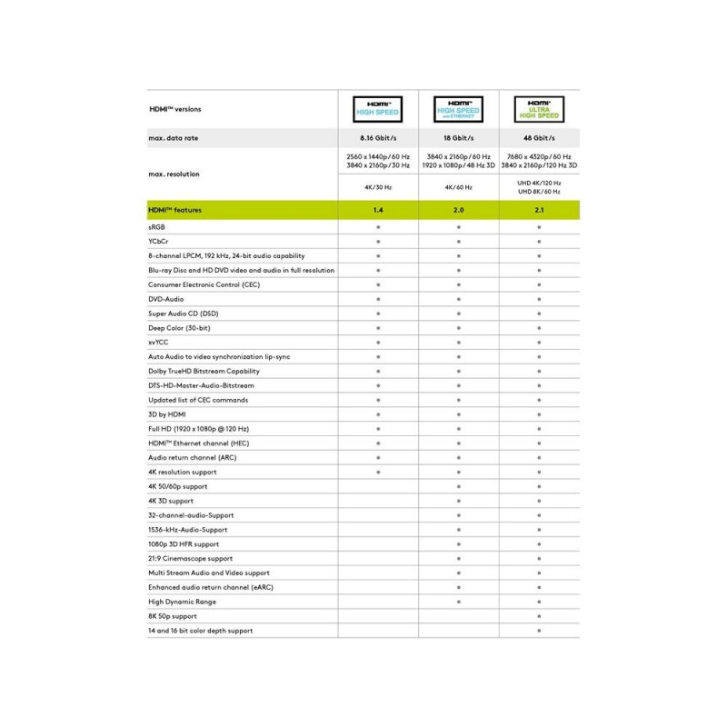 | Max. resolution | 8K/60Hz (7680x4320) Full UHD |
