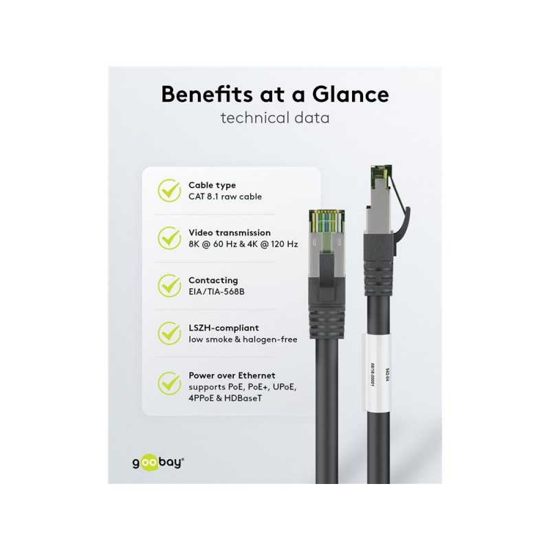Goobay CAT 8.1 patch-kaabel, S/FTP (PiMF), must 0.5 m