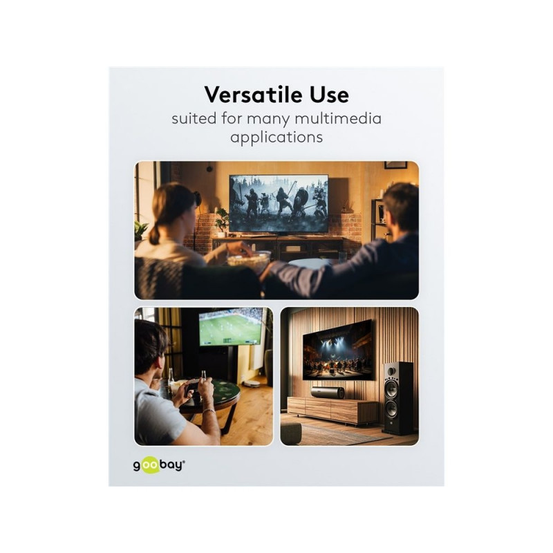 | Description | The Goobay Plus series comes in a slim, elegant metal design in Sharkskin Grey. The optical TOSLINK cable provides a super-fast transmission of audio signals without any interference - for absolutely synchronous sound and picture reproduction on home cine |