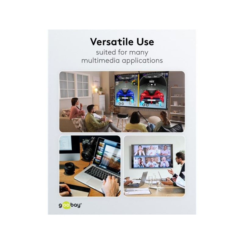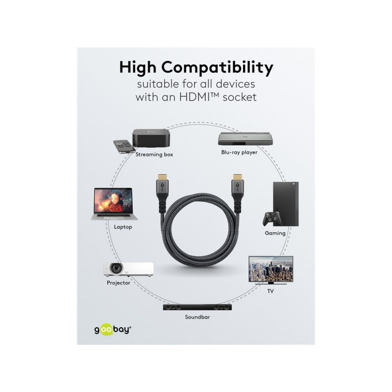 | Description | The Goobay Plus Series comes in a slim, elegant metal design in Sharkskin Grey. The state-of-the-art HDMI™ cable achieves top values in terms of resolution and transmission speed and is also ideally suited even for demanding functions such as ARC, HDR and |
