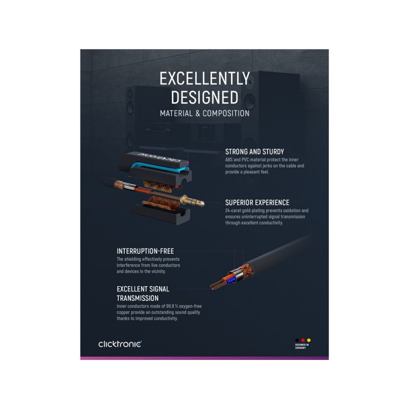 | Compatibility | Clicktronic Hi-Fi-Anlage, Clicktronic Subwoofer, Clicktronic DVD-Player, Clicktronic Blu-Ray-Player, Clicktronic Fernseher, Clicktronic Heimkino-System, Clicktronic Plattenspieler |