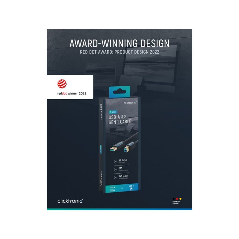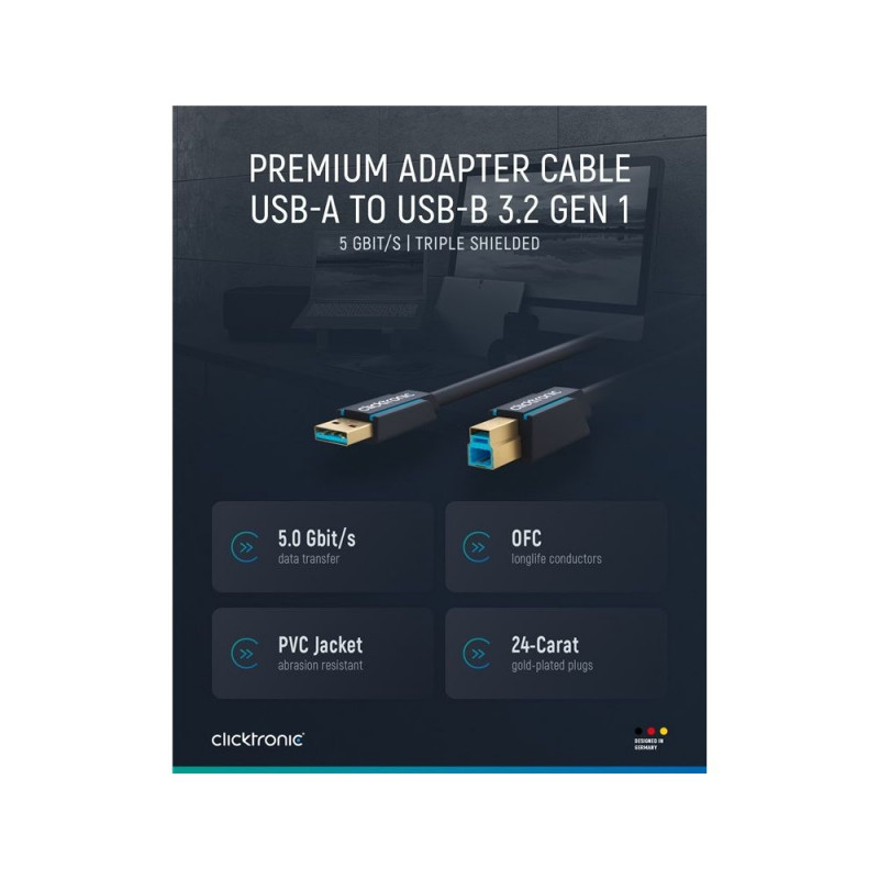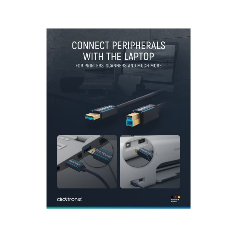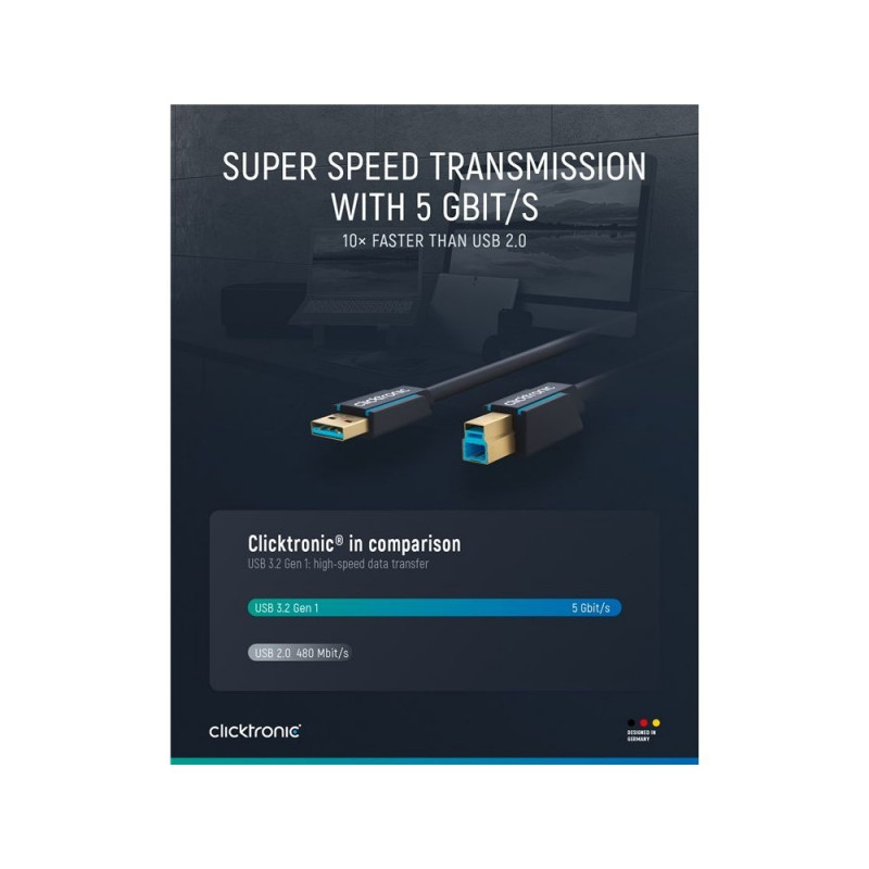 | Description | Clicktronic attaches great importance to durability and stability. Our quality promise: 10-year warranty on our USB cables. The proprietary construction of our connection cables makes them extremely robust. The three-part connector construction made of PV |
