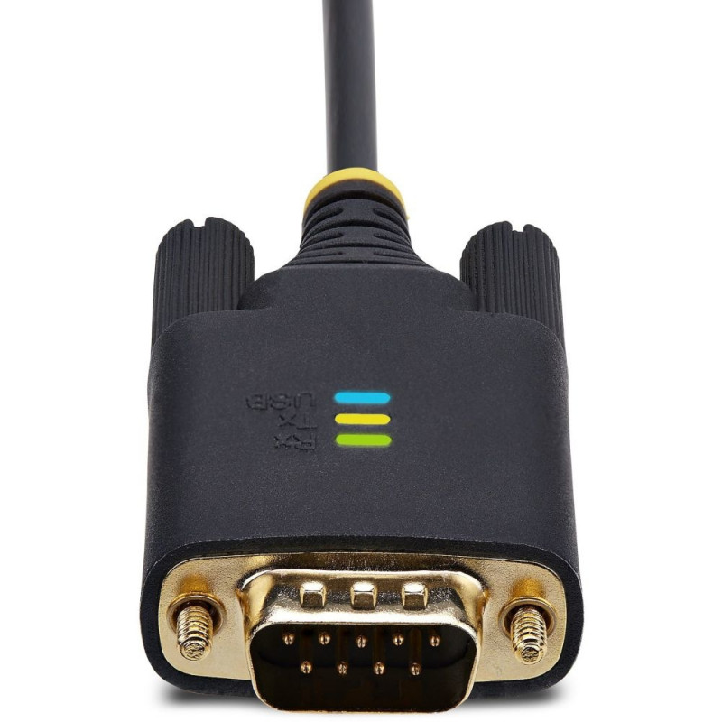 StarTech.com 3 m USB-serial adapter, COM-säilitusega, vahetatavate kruvide/mutritega, USB-A kuni DB9 kaabel, FTDI IC, USB kuni RS232, ESD kaitse, Windows/macOS/Linux. Toote värv: must, kaabli pikkus: 3 m, ühendus 1: USB tüüp-A. Pakendi laius: 220 mm, pakendi sügavus: 1 mm, pakendi kõrgus: 200 mm. Laius: 34 mm, kõrgus: 16 mm, kaal: 120 g. Saatmiskarbi laius: 570 mm, saatmiskarbi pikkus: 355 mm, saatmiskarbi kõrgus: 290 mm.