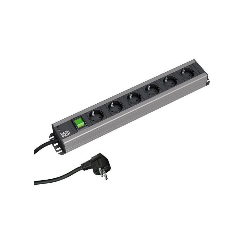 "BACHMANN Handwerkerleiste 6x Schutzkontakt Schalter 48,26cm 19-Zoll-Rack kompatibel 2m"
