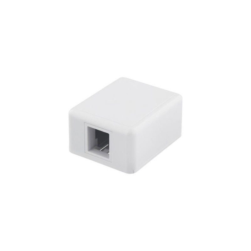 DELTACO Surface wall outlet for Keystone, 1 port, white<br><br>An external wall outlet with room for a Keystone socket with dimensions up to (WxDxH): 22x35x21mm.<br><br>The outlet is divided into two with snap-mount brackets and the cable entry can be easily enlarged by means of phase-outs in the housing.<br><br>Supplied with double-sided adhesive tape and screw.Deltaco VR-222. Construction type: Flat, Product colour: White. Width: 46 mm, Depth: 27 mm, Height: 57 mm. Package width: 140 mm, Package depth: 30 mm, Package height: 230 mm. Quantity per pack: 1 pc(s). Country of origin: China, Master (outer) case width: 140 mm, Master (outer) case length: 30 mm