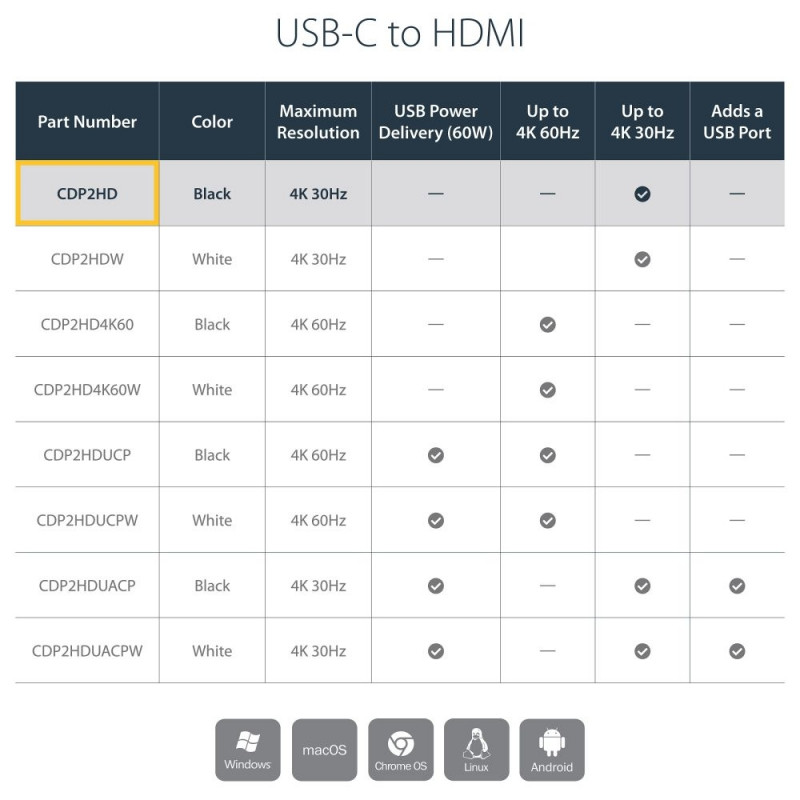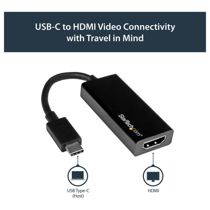 StarTech.com USB-C ja HDMI adapter 4K 30Hz - must. USB-versioon: 3.2 Gen 2 (3.1 Gen 2), USB-pistik: USB Typ-C, USB-liidese sugu: isane. Toote värv: must. Laius: 23 mm, sügavus: 147 mm, kõrgus: 9 mm. Pakendi laius: 200 mm, pakendi sügavus: 220 mm, pakendi kõrgus: 10 mm. Toodete arv transpordikastis: 120 tk, transpordikasti laius: 337 mm, transpordikasti pikkus: 500 mm.